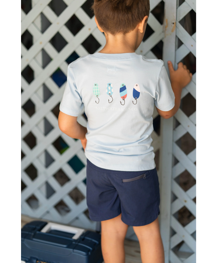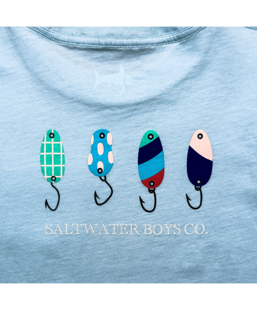 Hooked on style? The Lures Graphic Tee is perfect for your little angler in training. With four vibrant lures lined up on the back and that signature Saltwater Boys comfort, this tee brings playful, outdoorsy charm to any adventure—whether he's casting lines or just kicking back.