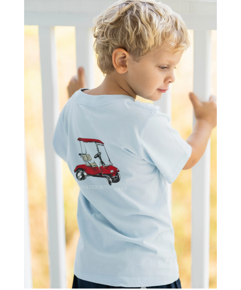 Whether he’s hopping on the back of a real golf cart or just dreaming of the day, this tee keeps it fun, fresh, and full of personality.