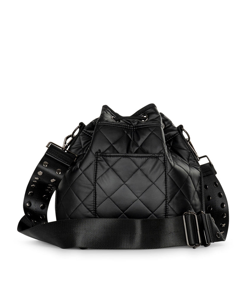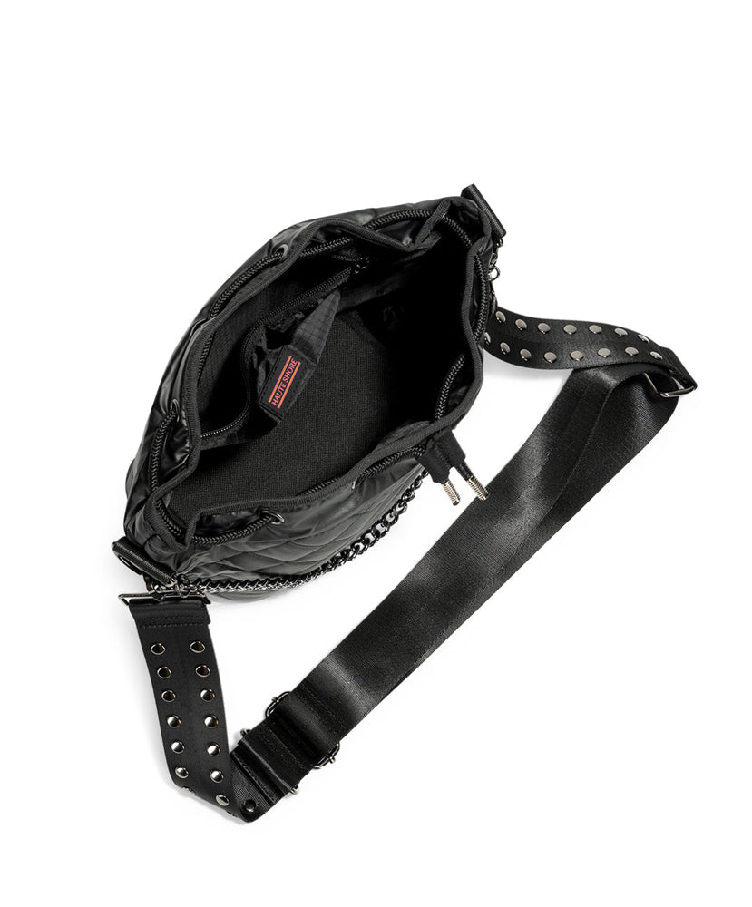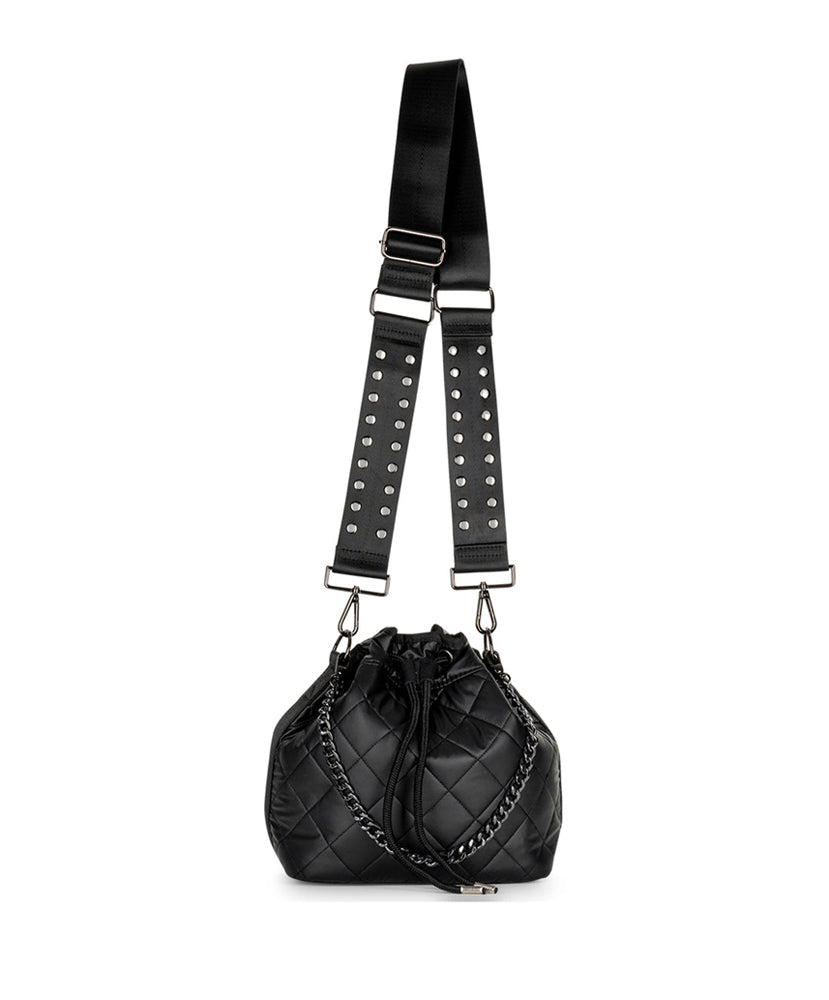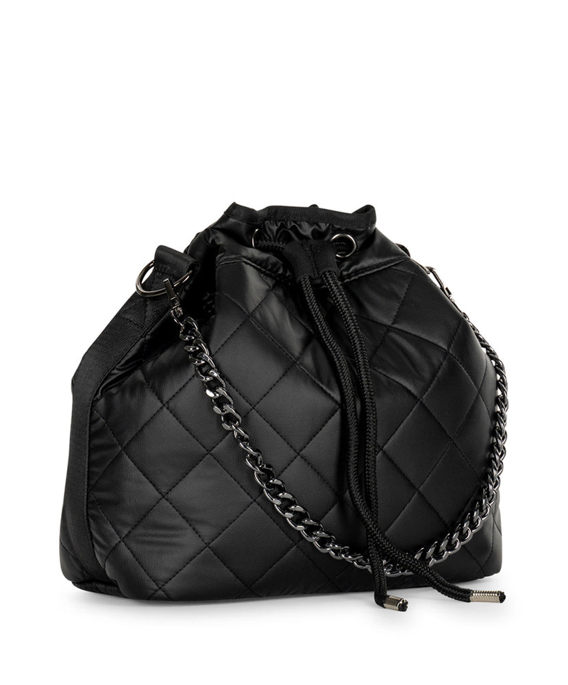 Features a short handle strap, adjustable crossbody strap & chain strap