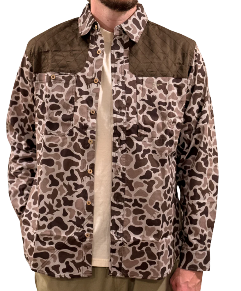 A classic upland look with modern performance built in — the Prairie Shirt is made for hunters who want dependable comfort without sacrificing style. Crafted from a breathable cotton–spandex blend, it delivers easy movement with just the right amount of stretch. Quilted shoulder panels add durability where you need it most, and underarm ventilation keeps you cool through long days outdoors.