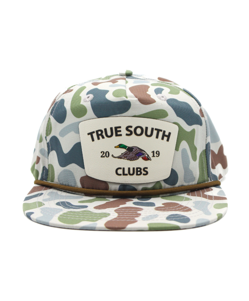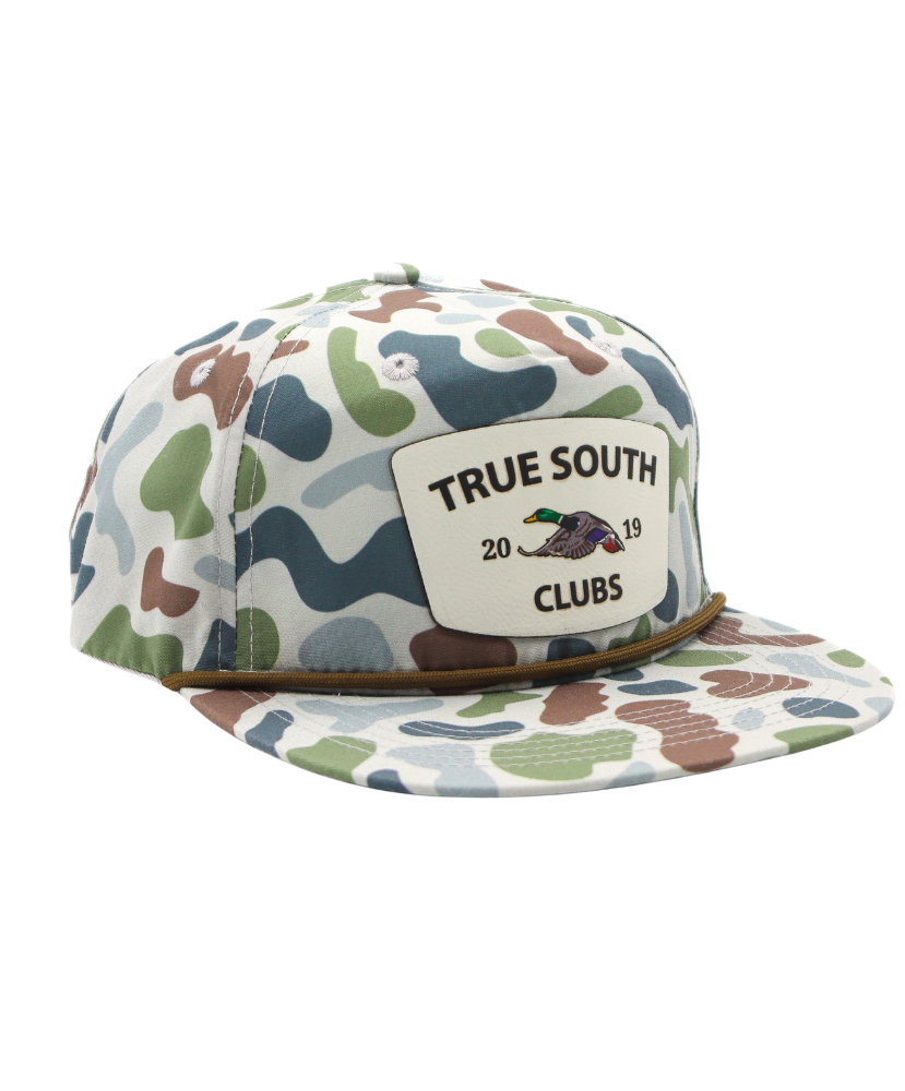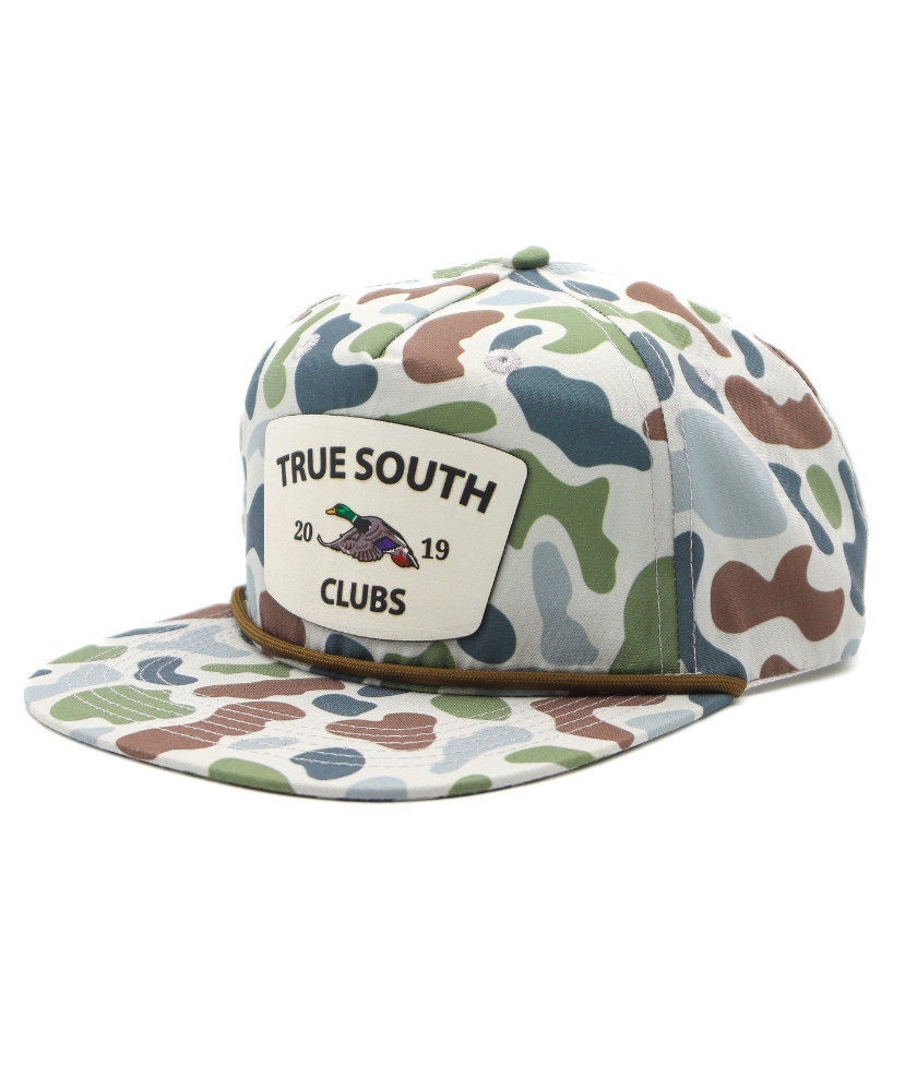 Stand out from the flock with the Mallard In Color Hat. Featuring a bold patch with a flying mallard front and center, this cap pairs the vibrant duck graphic with a brackish camo backdrop for a modern twist on a timeless outdoors look. Finished with a rope accent across the brim and an adjustable snapback closure, it’s built for comfort whether you’re in the blind, at the tailgate, or just kicking back in the sun.