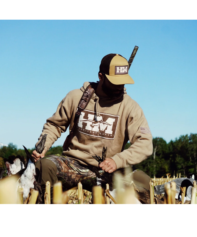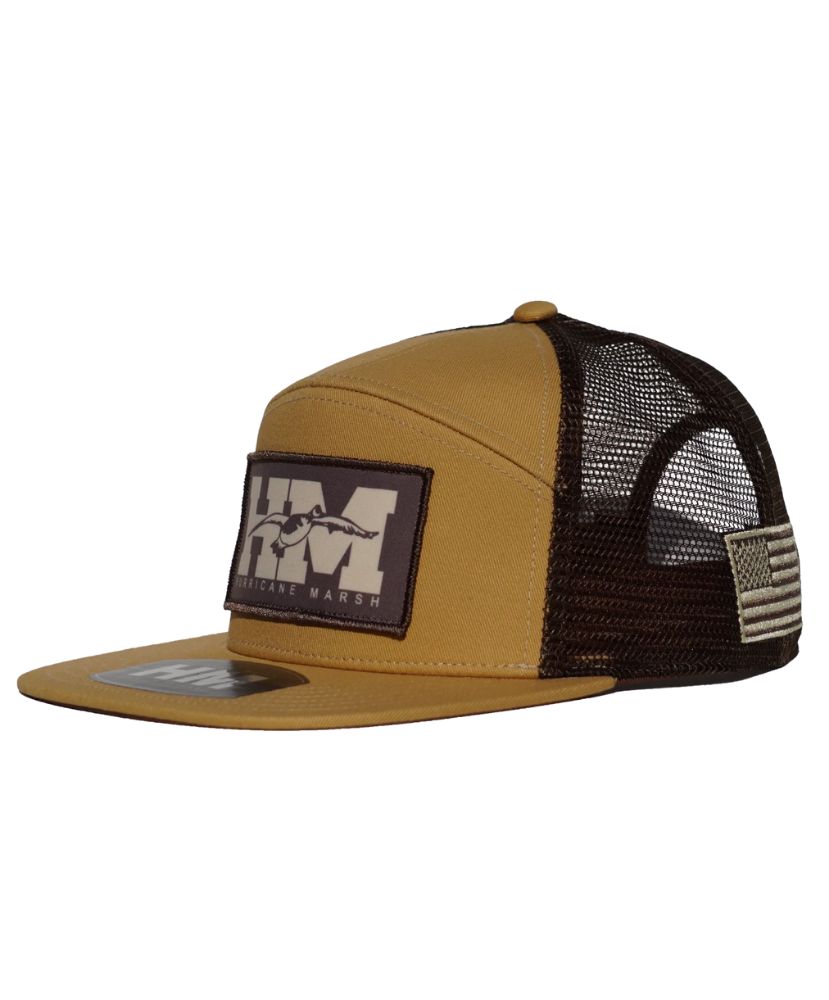 Built for the hunter, the patriot, and the guy who knows the best kind of alarm clock is a flyover at dawn. The All American Honker 7 Panel Snapback features our bold HM logo, a Canada Goose in flight, and an American flag patch so you can rep your country and your calling. Whether you're in the blind or at the bar, this hat does the talking.