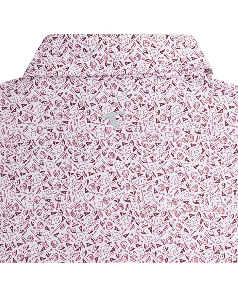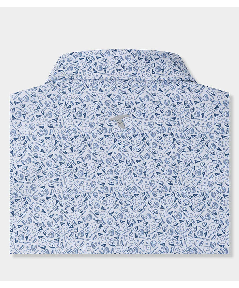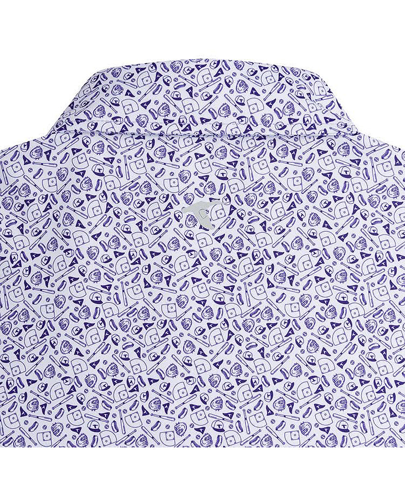Play ball with this polo! The brrrº cooling technology is moisture wicking and fast drying, keeping you cool and ready for the seventh-inning stretch. This collection of baseball-themed prints feature a heat transfer logo on the center back neck polo, as well as sewn-in permanent collar stays to ensure you're always available to pinch hit.