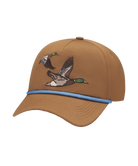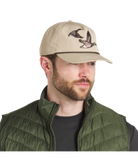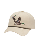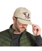 Take flight in style with the Ensenada Rope Hat - Wildlife - Ducks. Featuring a pair of embroidered flying mallards against a rugged ripstop polyester build, this 5-panel snapback is ready for any outdoor pursuit. Lightweight, durable, and finished with a contrast rope detail across the brim, it’s a perfect blend of function and field-inspired style. Whether you’re in the blind or around town, this hat is your go-to for comfort and adventure.