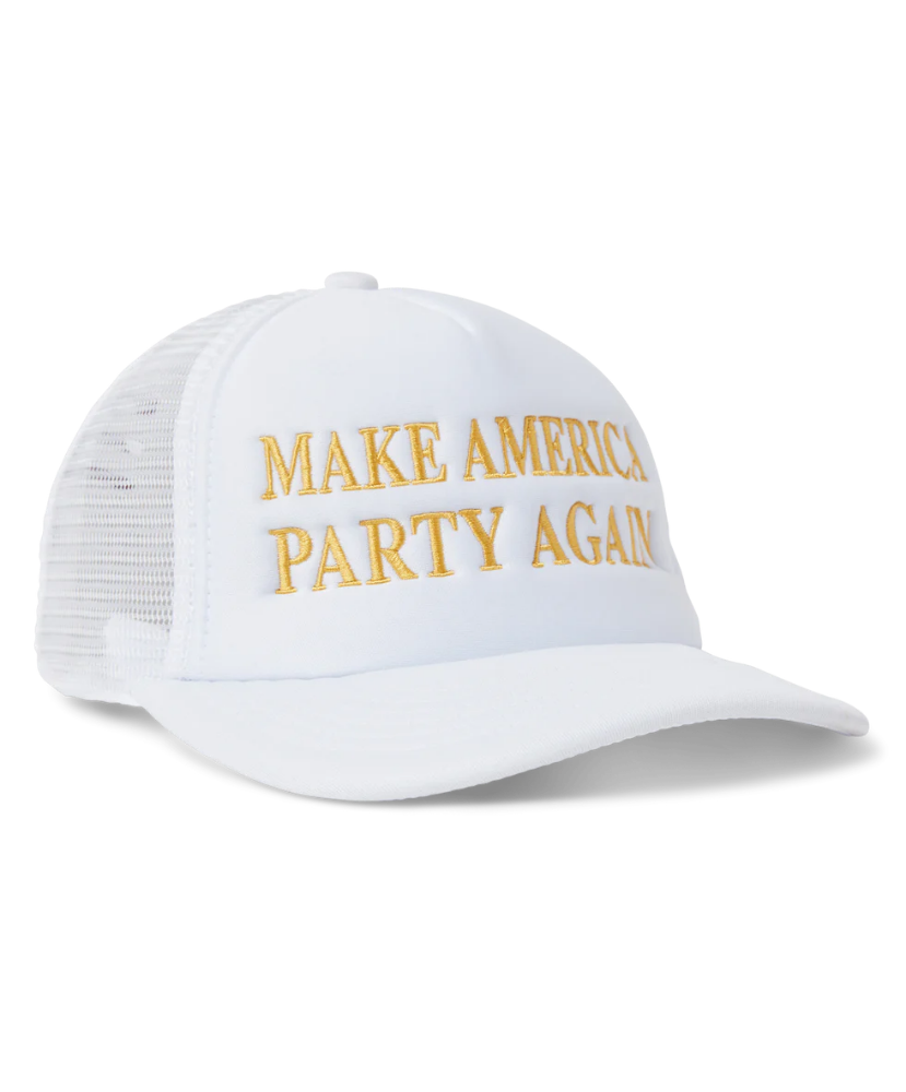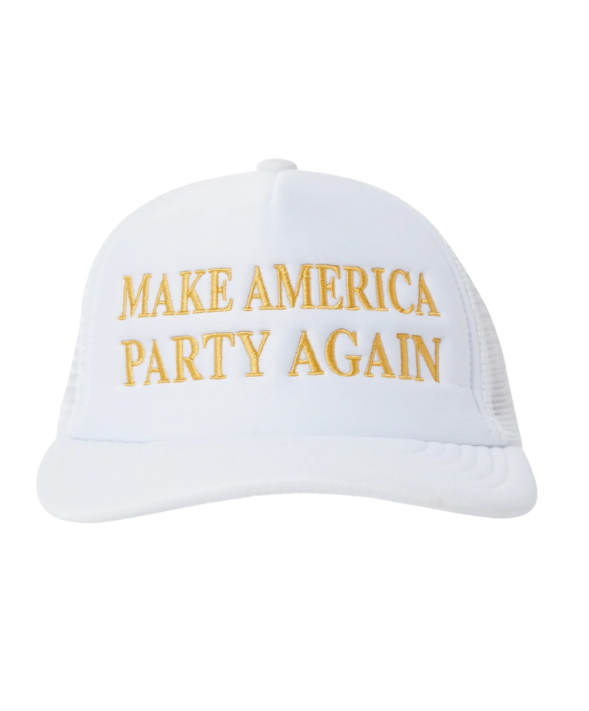 Make America Party Again—one beer pong tourney at a time. This foam trucker isn’t just a hat, it’s a movement. High crown. Mesh back. And embroidered in gold like the trophy you’ll win for showing up with it on. Wear it proud, raise your red cup higher.