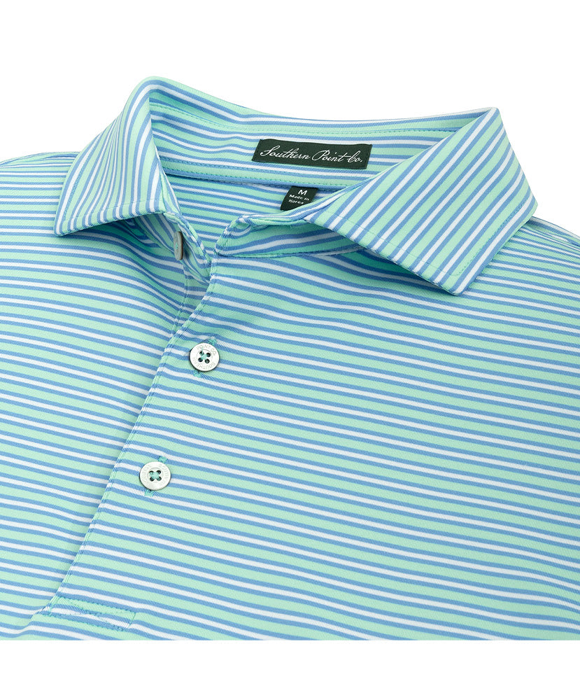 No matter what you do or where you go, stay cool and dry all day long with this premium performance stripe polo. This polyester-spandex fabric polo guarantees an unmatched, performance-driven feel with quick-dry and moisture-wicking properties to keep you comfortable from the driving range to your next office meeting.