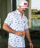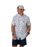 This is the shirt you throw on when the group text says “lake day?” and you don’t know if that means cruising, grilling, swimming, or all of the above. The Lake Weekend Performance Button Up is lightweight, breathable, and built to keep up from dock mornings to sunset drinks. It looks sharp enough for lunch plans, but stretches enough for boat days and beer runs—basically your weekend MVP.
