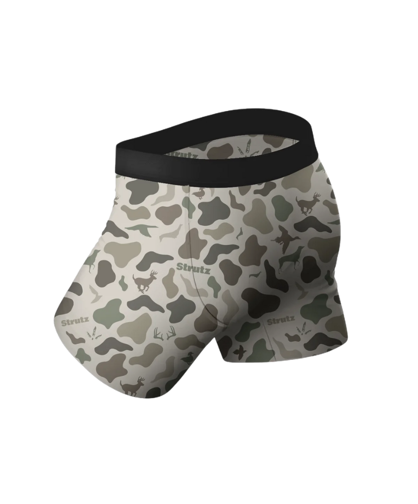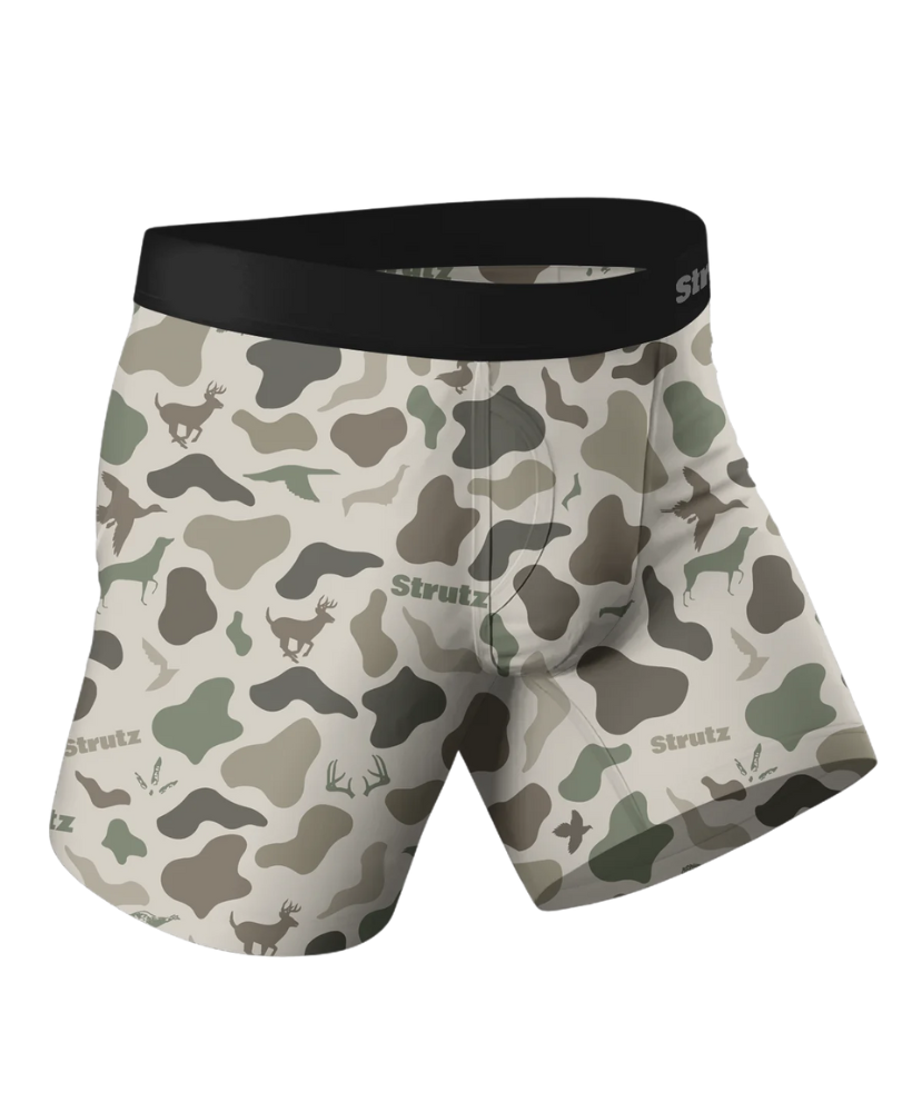 Built for the wild but made for the weekend. The Camo Bottom boxer briefs deliver all-day comfort in a print that says, "I could be in a tree stand right now." Featuring a soft, breathable micro-modal blend and a smooth waistband that won’t bunch or ride, these are the base layer your hunt camp didn’t know it needed.