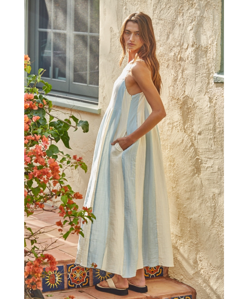 Easy, breezy, and made for sunshine days. The Zabina Dress brings effortless charm with its airy cotton gauze fabric and soft vertical stripes. With a relaxed silhouette and delicate details, it’s the kind of dress you’ll reach for all season long. Lightweight, flowy, and endlessly comfortable, it’s perfect for everything from beach strolls to weekend brunch.