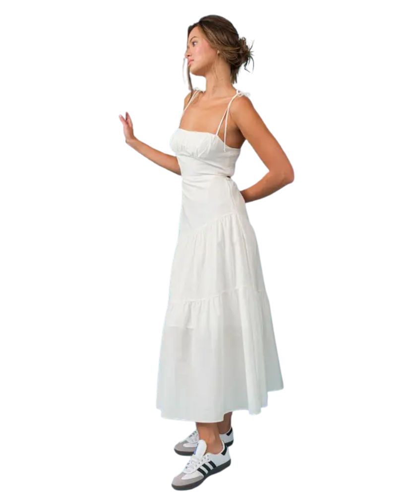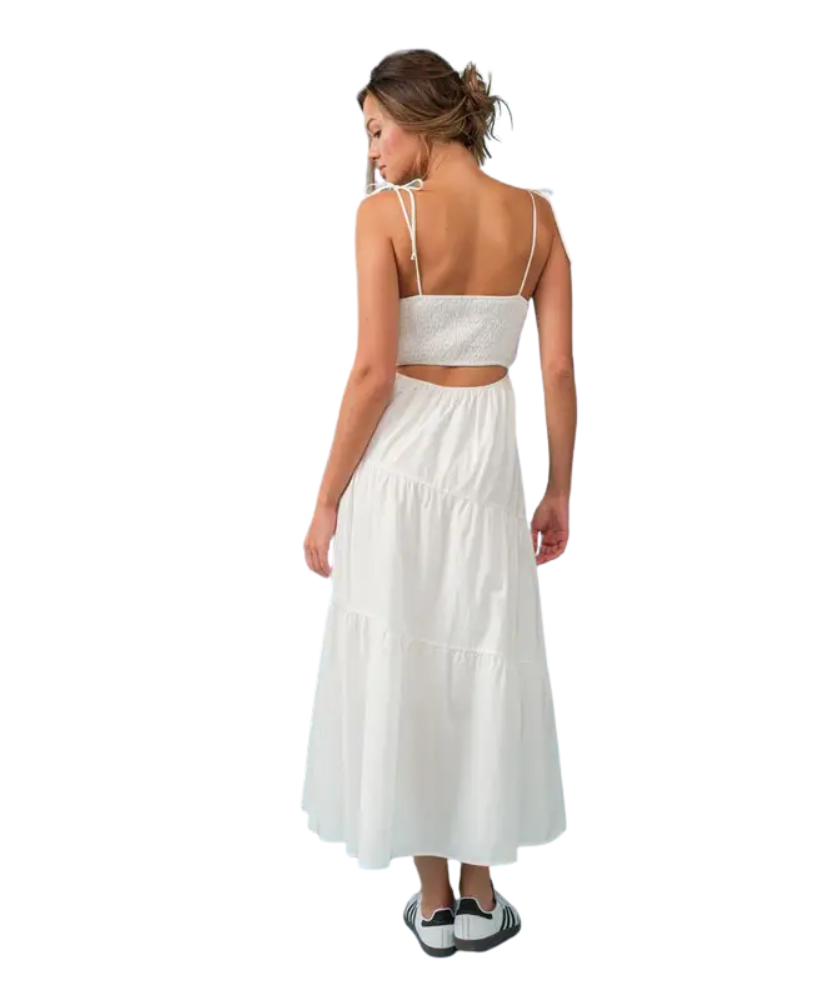The dress that says “effortless romance” without you even trying. With dainty tie straps, a breezy tiered skirt, and a cheeky smocked back cut-out, Kinsley is your ticket to sundrenched days and flirty summer nights. Dress it up, dress it down—either way, you’re the main character.
