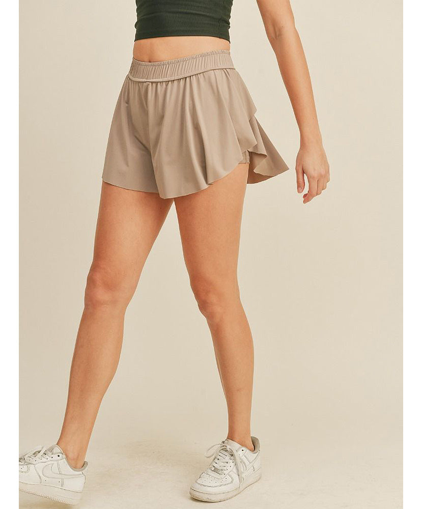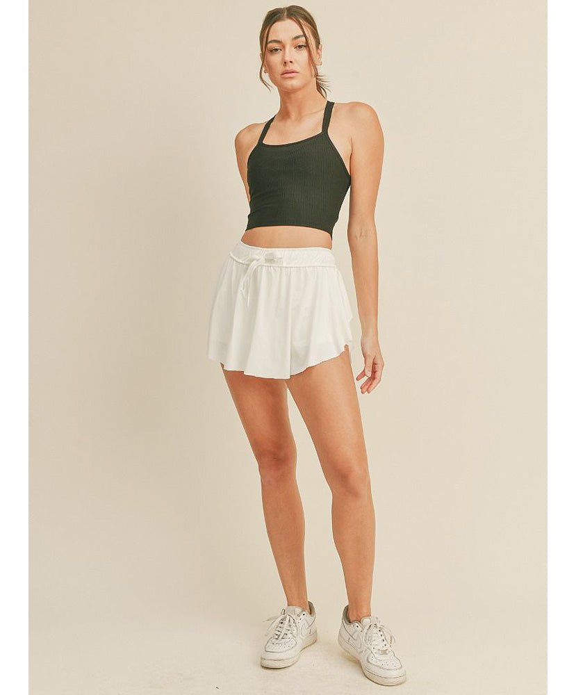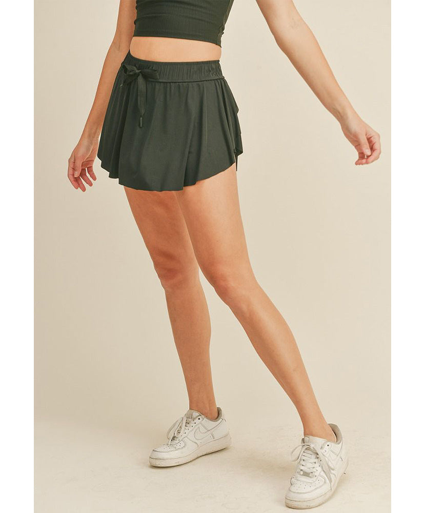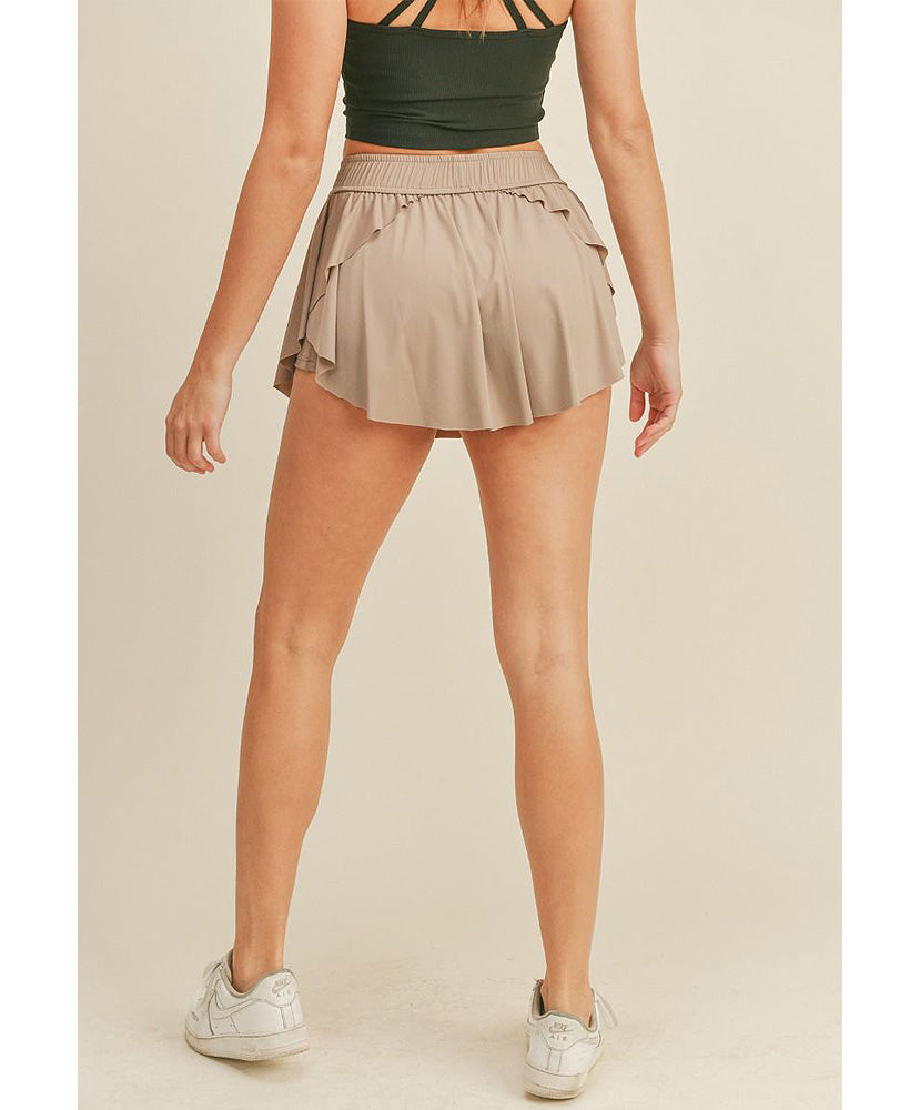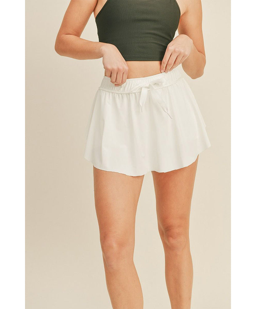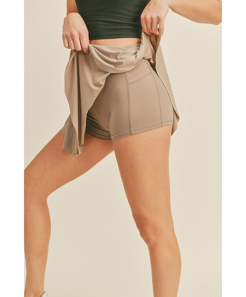 Functional skort featured in a lightweight fabrication and flowy fit with adjustable drawstring, built in shorts.