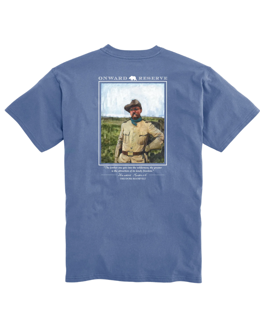 Celebrate the adventurous spirit of Theodore Roosevelt with this classic tee. Made from ultra-soft Peruvian cotton, it’s designed for comfort whether you’re out in the field or relaxing after the hunt. Featuring a bold outdoorsman graphic on the back and a chest pocket up front, this shirt honors one of America’s greatest conservationists.