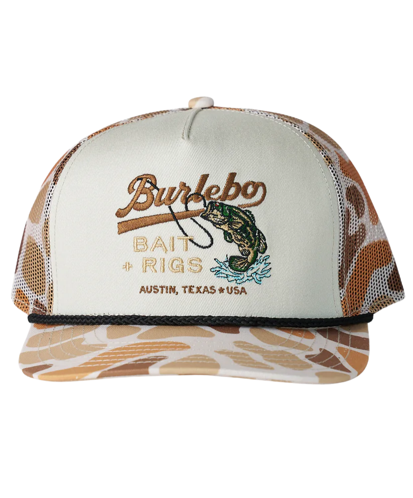 Built for days on the water and everything after, the Bait & Rigs Camo Cap brings together classic fishing style with breathable comfort. With its detailed front embroidery and camo mesh backing, it’s made for anglers who like their gear to work as hard as they do.