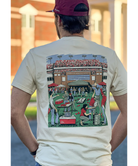 The Stadium Tailgate Tee is a full-color tribute to Southern Saturdays done right. Coolers cracked, grills smoking, speakers blaring, and someone definitely taking beer pong way too seriously. Set just outside Dirty Marsh Stadium, this scene proves the tailgate is the main event and the game is just a bonus.