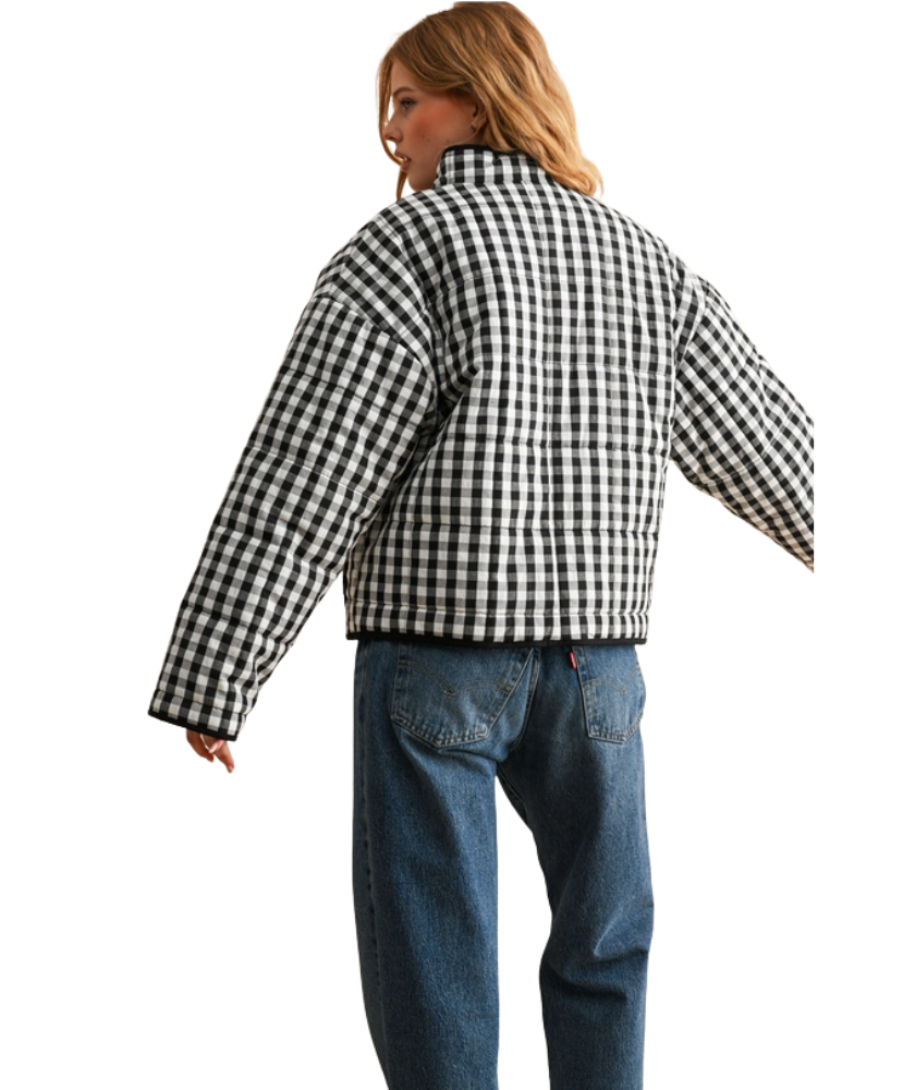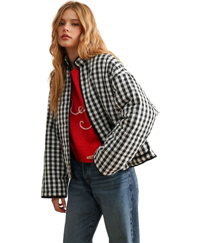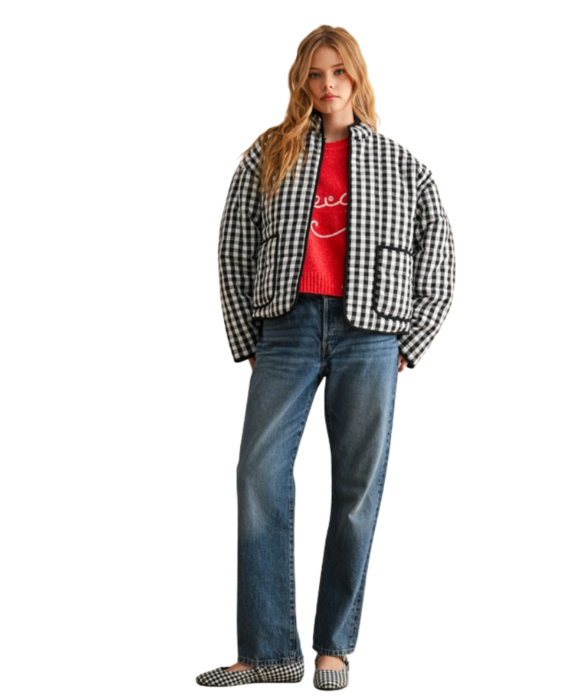 Classic gingham with a modern, oversized twist. The Ellison Jacket brings all the fall-meets-winter charm with its bold checkered print, soft cotton feel, and relaxed silhouette that layers like a dream. Designed with contrast piping and roomy patch pockets, it blends statement style with everyday comfort. Toss it on for pumpkin patch strolls, crisp morning errands, or a festive holiday coffee run — it’s the jacket that makes even a simple tee and jeans look intentional.