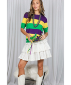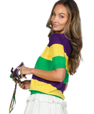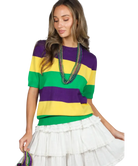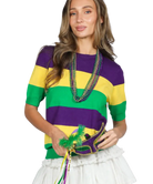 Mardi Gras Short Sleeve Color Block Sweater