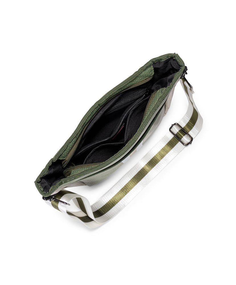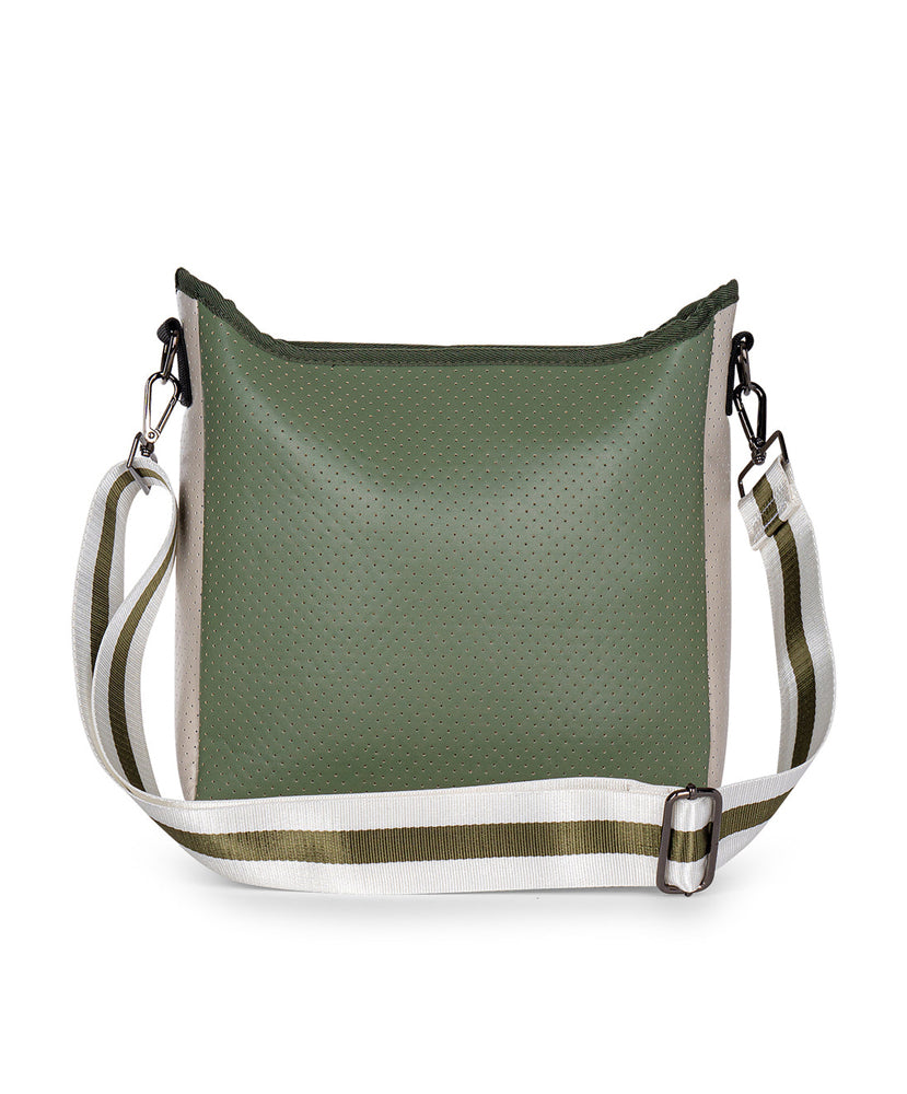 This full size crossbody is perfect for carrying it all.  Featuring a lined roomy main entrance with pockets and a front hidden pocket both with zipper closures.  Two crossbody straps standard.