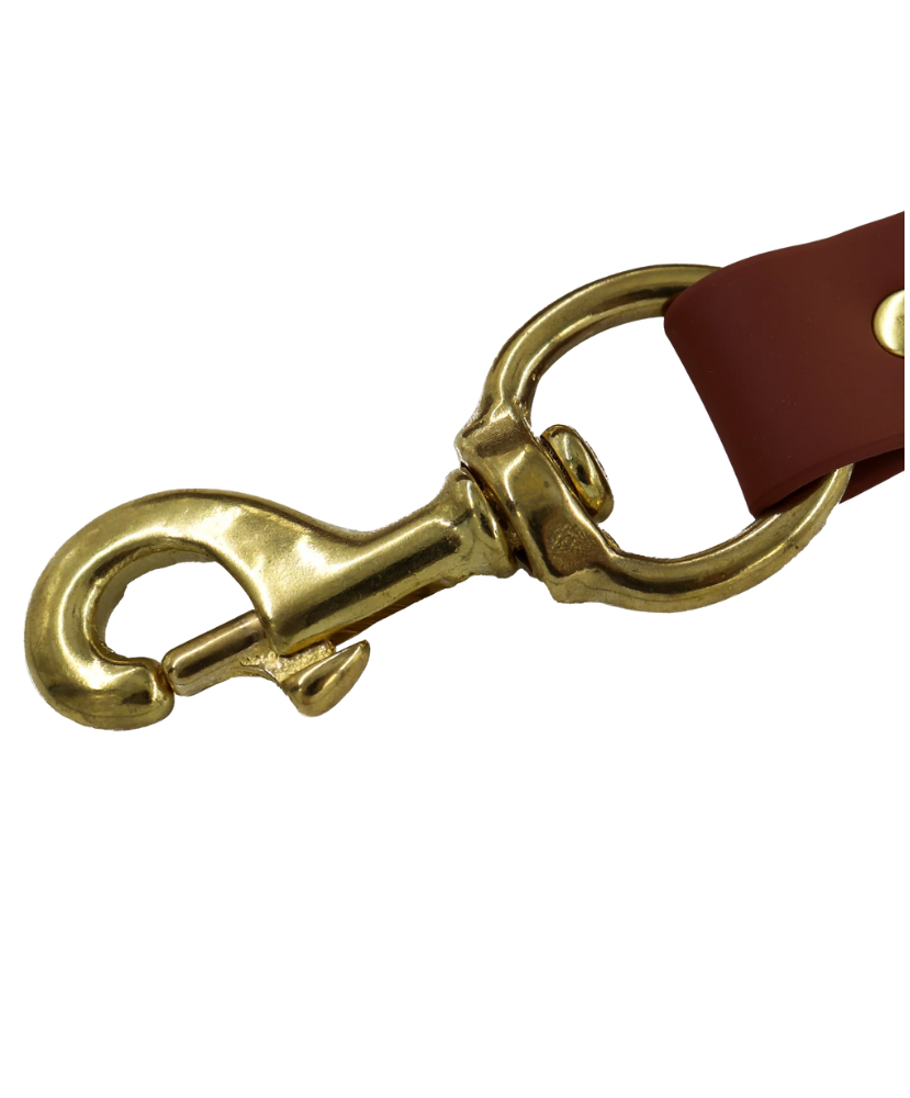 The Local Boy Biothane Dog Leash is built tough for your four-legged best friend while keeping style in check. With a waterproof outer coating, this leash is ready to take on rain, mud, and every adventure in between. Finished with solid brass hardware and a classic Local Boy logo plate, it’s the perfect match for our Biothane Dog Collars. Durable, dependable, and downright good-looking.