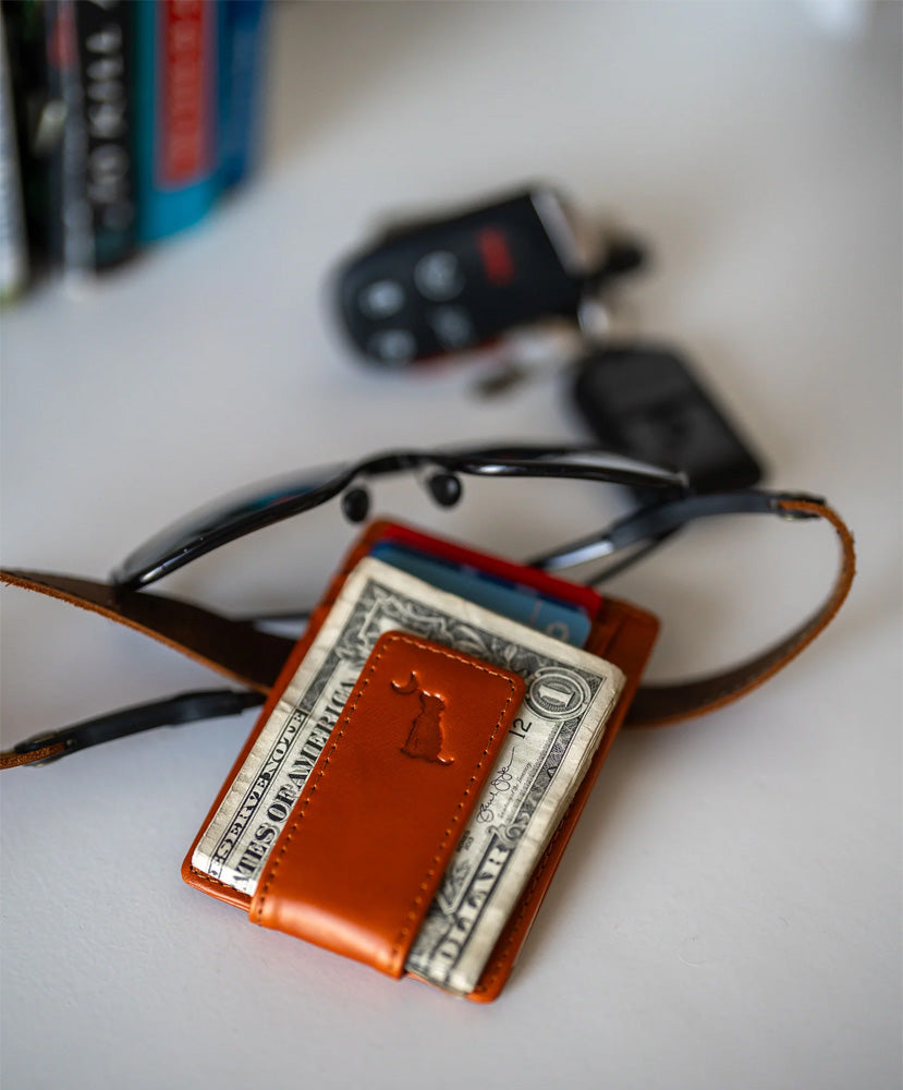 A dependable, great looking wallet is always important. So Local Boy constructed theirs from 100% genuine leather, then gave em' a lean profile (to fit most any pocket) and added just enough slots to keep things clean and organized. They feature double stitched seams at the outer ridge and stress points, a synthetic woven interior money slot (for easy cash retrieval), and the "Dog & Moon" logo. And like a good scotch, they only get better with age.