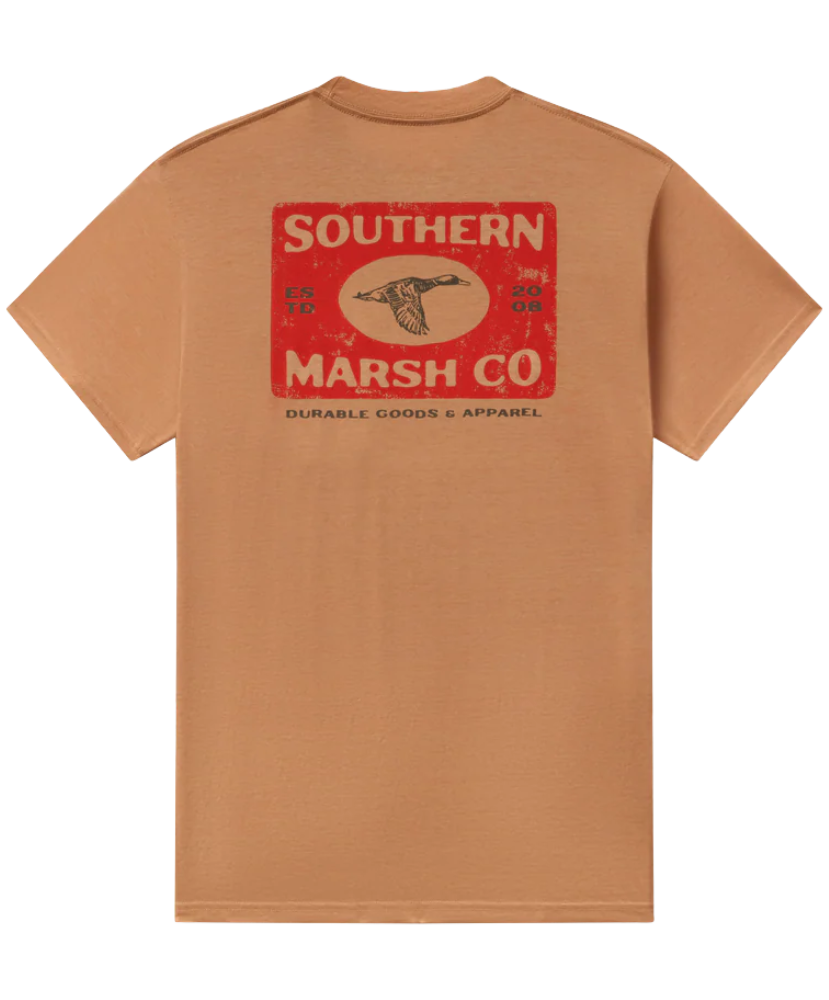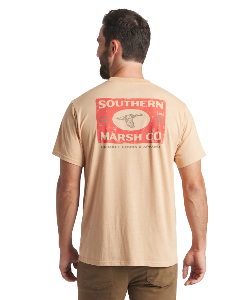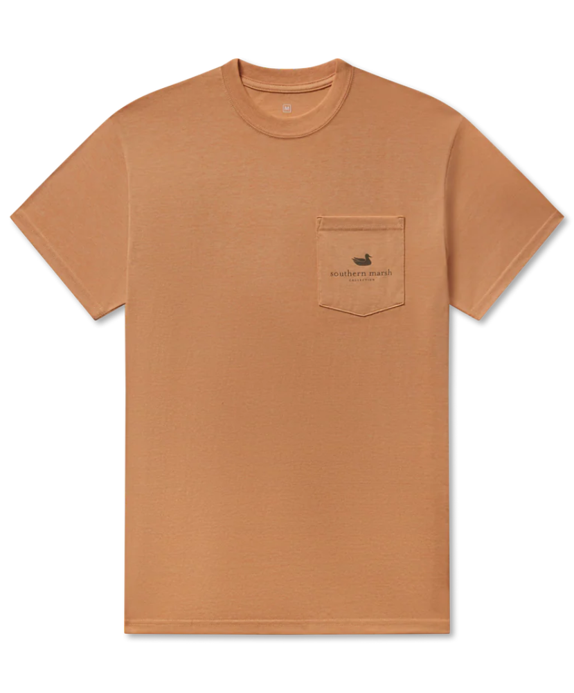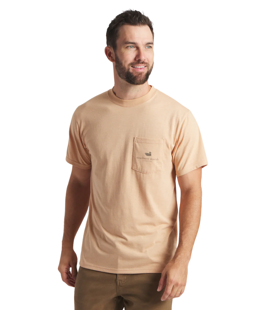 Easy-going comfort meets timeless Southern style. The SEAWASH™ Tee - Mallard Sighting is crafted from our breathable, lightweight cotton-poly blend that’s designed to soften with every wash. Featuring a vintage-inspired Southern Marsh Co. logo with a flying mallard on the back and our classic duck logo on the front pocket, it’s the kind of tee you’ll reach for all season long.