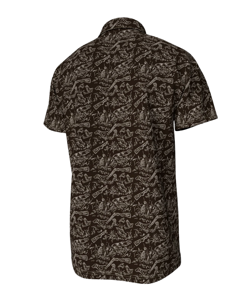 The Pointer Pattern Performance Polo blends function with field-inspired style. Made from a premium polyester-spandex fabric, this polo keeps you cool and dry with moisture-wicking, quick-dry technology. Whether you're at the driving range, in the office, or kicking back at camp, it delivers comfort without sacrificing sharp looks.