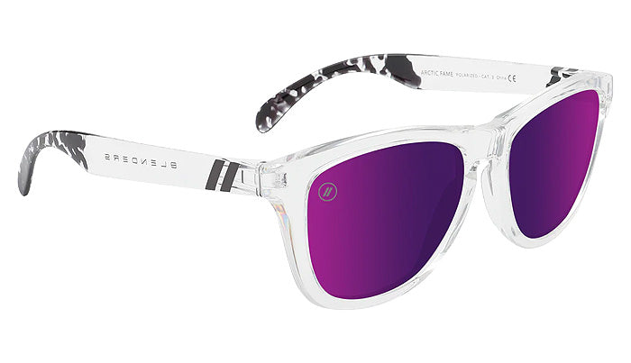 Why fly under the radar when you can live a life of 'Arctic Fame?' These crystal clear sunglasses crush the game with an ice cold colorway and contrasting tortoise temple tips. The polarized purple lens offers a contrasting pop of color for an elevated aesthetic. Lightweight and durable, they’re easy to wear and easy to love. //