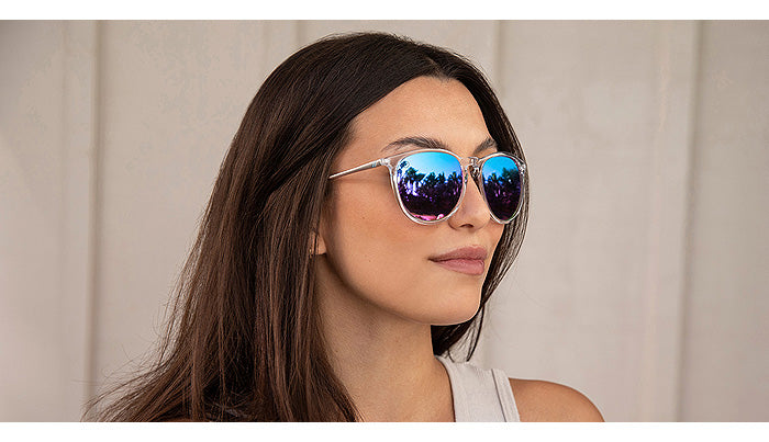 'Always Cool' is a reminder that style can—and should—be effortless. Throw on these steezy round sunglasses and instantly elevate any fit. The durable, flexible TR90 frame is eye-catching and crystal clear, while the matte metal-plated temples demonstrate this collection’s dedication to mixed materials. A polarized green/purple/violet lens is complemented by color-fade temple tips as a finishing touch.