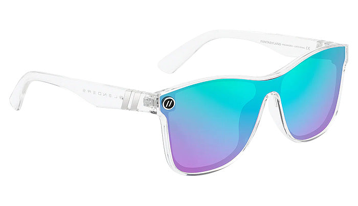 The 'Millenia X2' collection represents a proud evolution in form and 'Fantasyland' plays its part to a T. This is big-time style—literally! The trendy, oversized crystal clear frame stands in icy contrast to the shimmering blue, yellow, and purple tones of the dreamy single-lens design. If you’re searching for medium-to-large polarized sunglasses, it's tough to imagine a better fit. //
