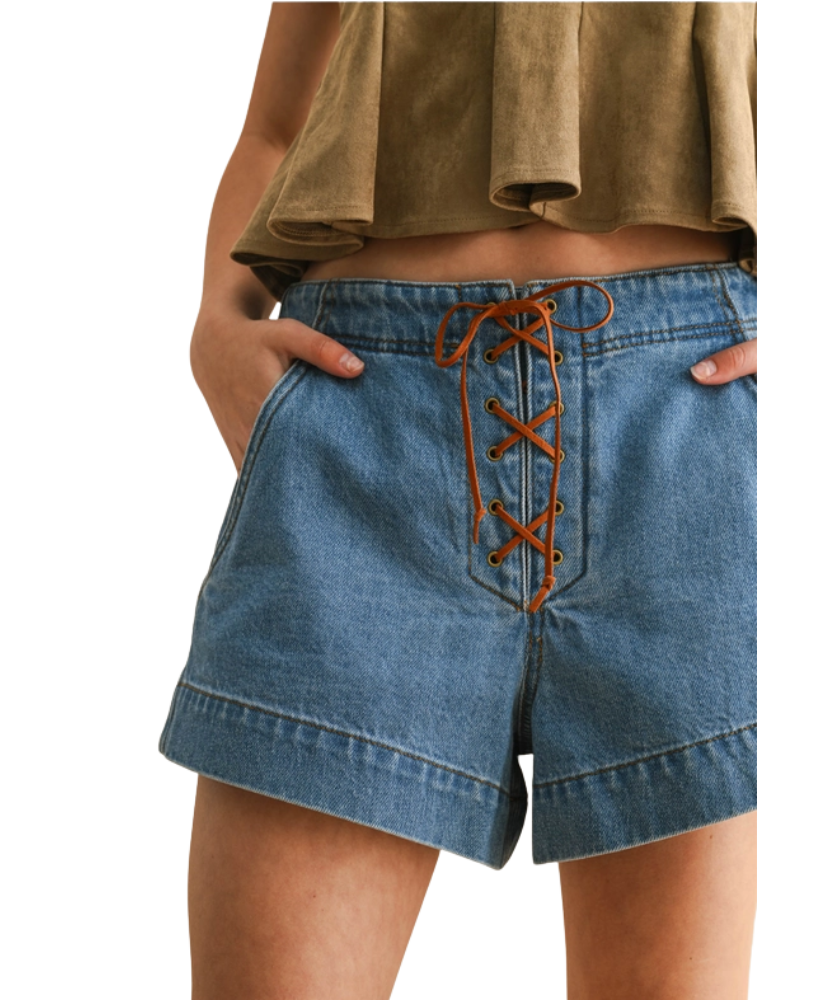 Where denim meets Western flair—these lace-up shorts are ready for your next adventure. Featuring a statement suede lace-up front, cuffed hem, and relaxed fit, the Suzanna Shorts give off that effortlessly cool, boho-cowgirl vibe. Whether paired with boots or sneakers, they’re your new go-to for sunny days and concert nights.