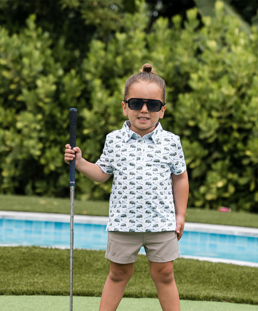 Youth Performance Polo, where style meets functionality. With 91% Polyester and 9% Spandex, this polo offers unparalleled comfort and versatility. With quick-dry and moisture-wicking properties, these Performance Polos keep them cool and dry all day, whether your little one is joining Dad for a tee time, at the playground, church, school, or simply everyday adventures. Plus, with the UPF 50 protection, they will stay shielded from the sun's harmful rays.