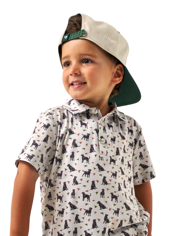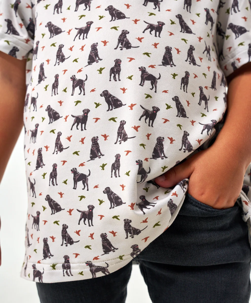 For the kid who’s happiest outdoors, the Youth Ducks and Dogs Polo brings together two favorites—retrievers and ducks—in a fun all-over print. Built with Burlebo’s best-selling performance material, this polo is breathable, quick-drying, and packed with UPF protection so your little one stays comfortable from the playground to the duck blind.