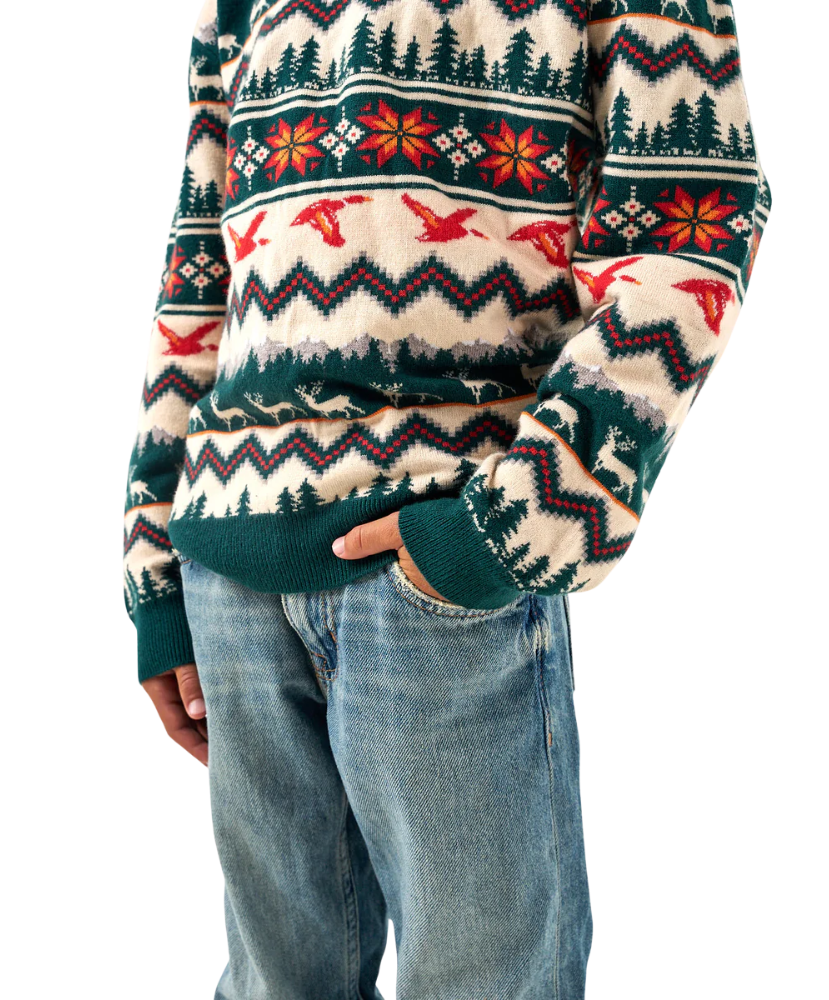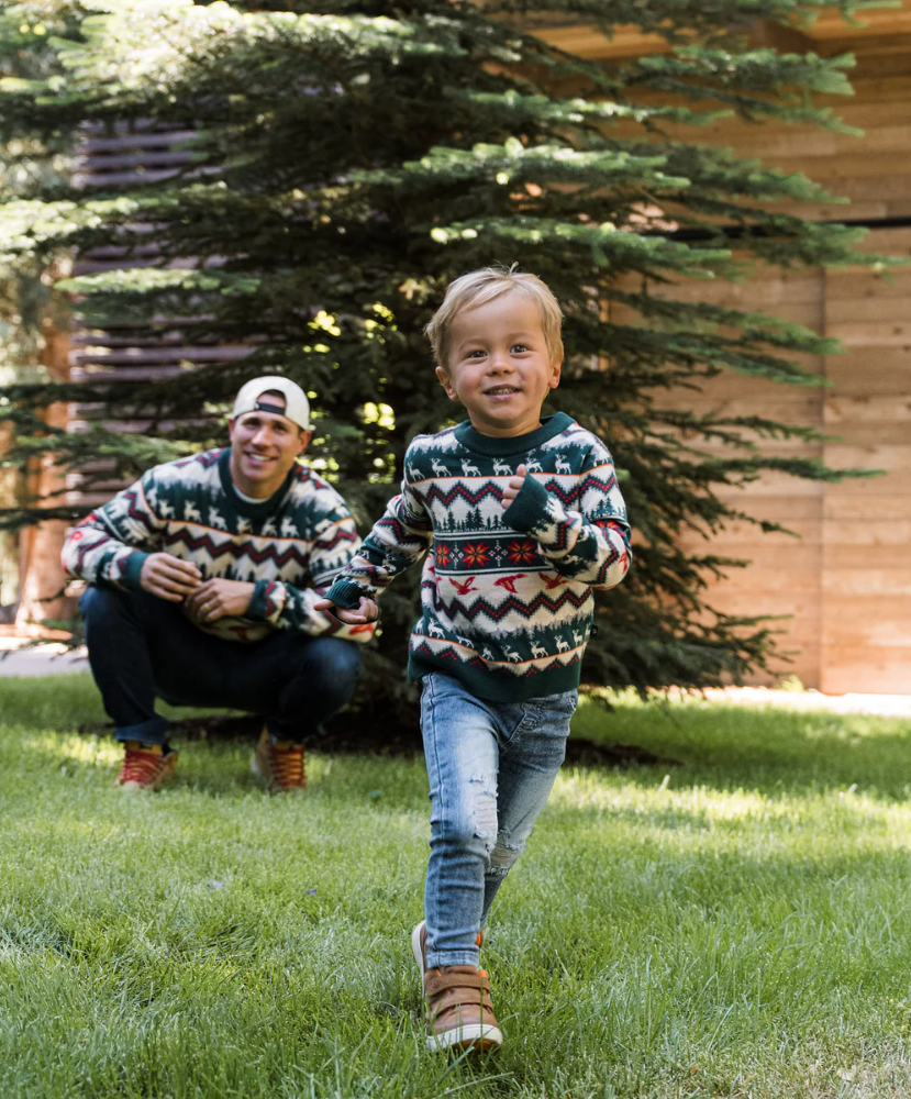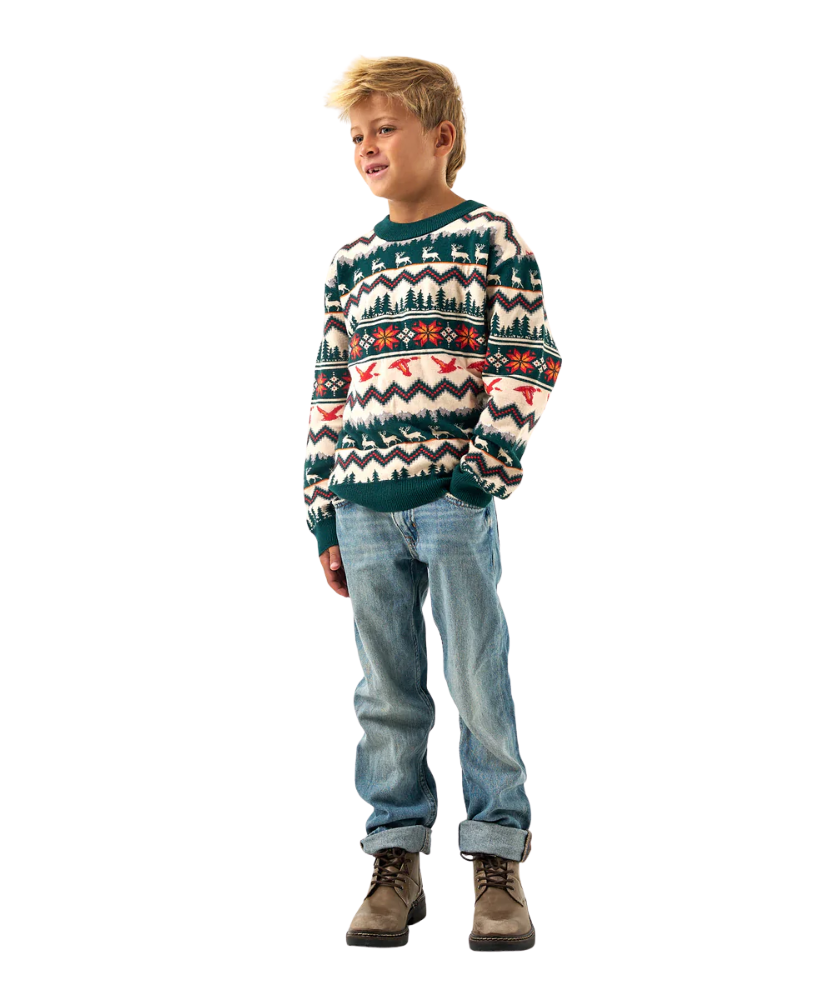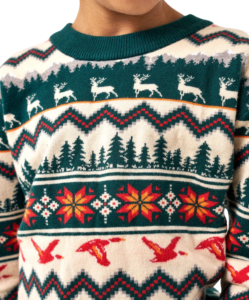 Let the little ones join in on the holiday fun with the Burlebo Youth Christmas Sweater. Featuring the same outdoors-inspired design as Dad’s version, this cozy knit showcases festive deer, ducks, trees, and mountain patterns for the perfect blend of Christmas cheer and outdoor spirit. Soft, durable, and full of personality, it’s built for holiday photos, family gatherings, or Christmas morning excitement.