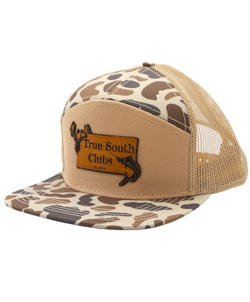 Built for the hunter, angler, and everyone who feels at home in the great outdoors. The TSC Fur and Fin Hat combines two southern passions—marlin and deer—stitched into a rugged, go-anywhere design. With its breathable mesh back, camo brim, and structured fit, it’s the perfect cap whether you’re on the boat at sunrise or headed to deer camp at dusk.