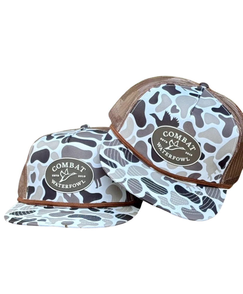 Built on a traditional custom 5-panel shape, it features breathable mesh backing, a crisp patch front and center, and that signature rope detail that says “I know what I’m doing.” Light, durable, and ready for action, it’s the cap you’ll reach for whether you’re in the blind, on the boat, or just running the weekend circuit.