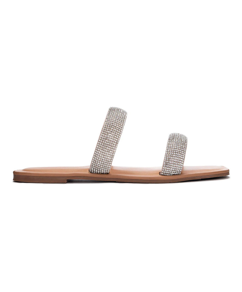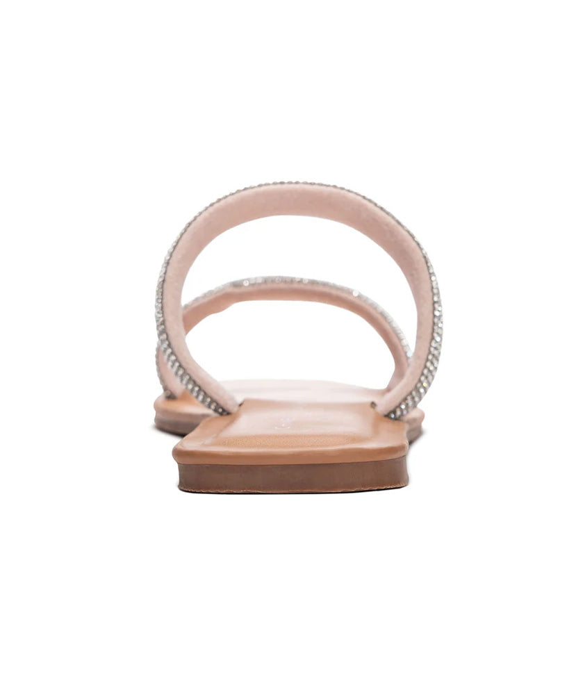 The sandal that sparkles almost as much as you do. Meet the Zailey. Featuring two rhinestone-studded vamp straps atop a neutral tan sole, this slide will have you gliding through life like the glittering goddess you are.