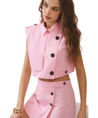 - Cropped vest with bold button accents