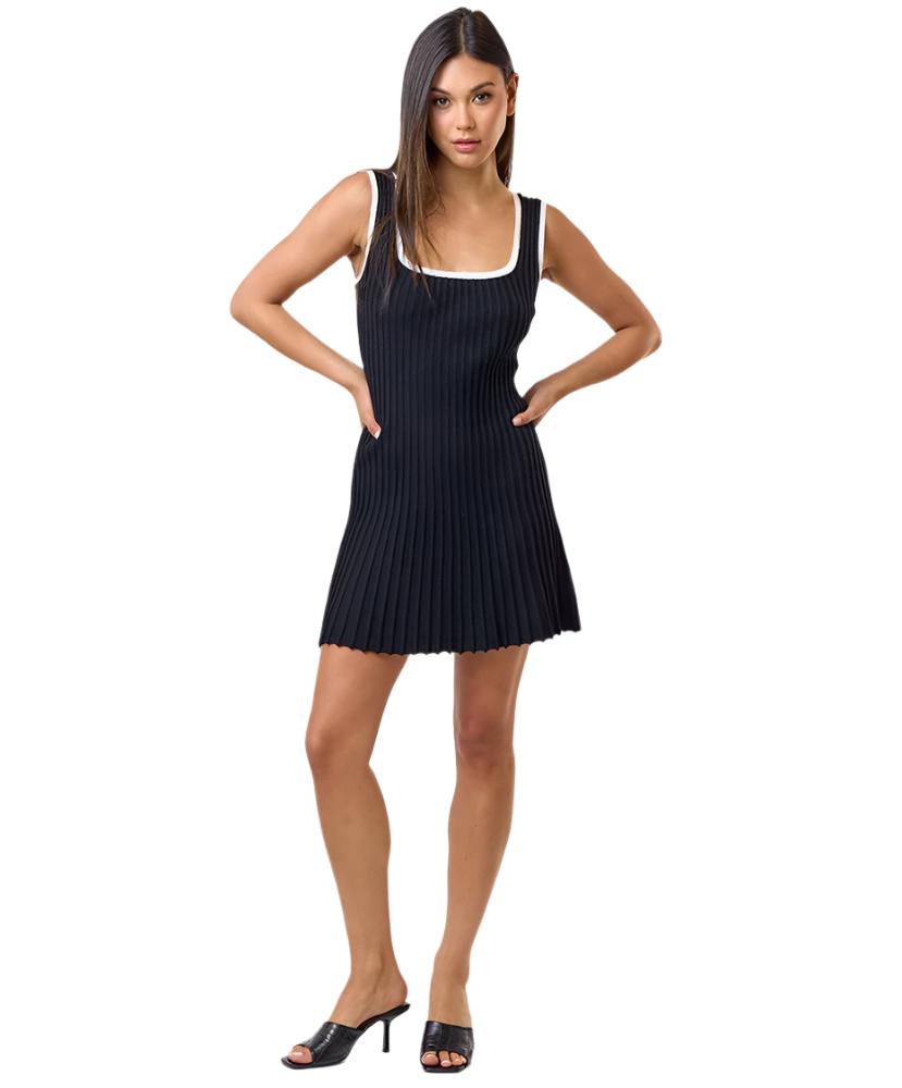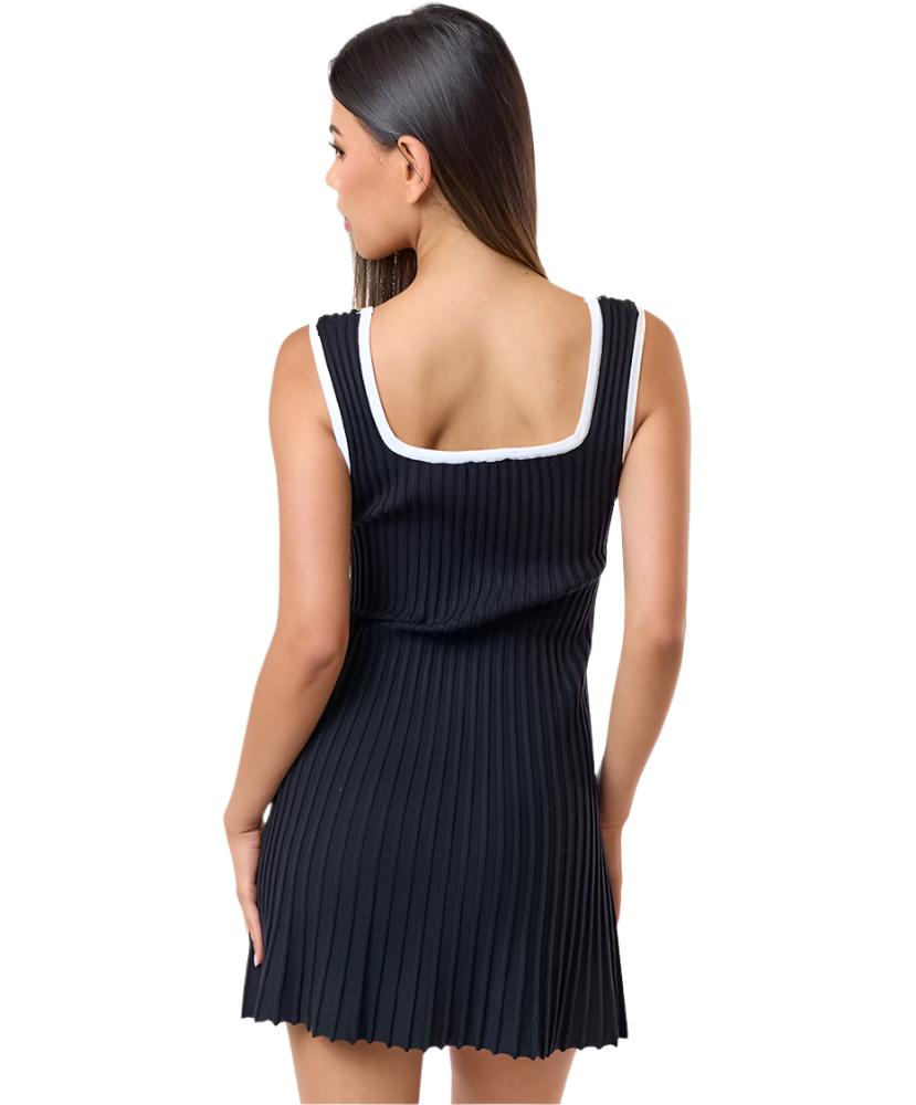 Contrast binding pleated sweater mini dress.