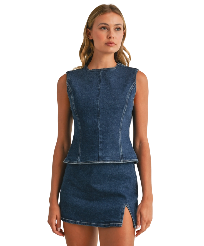 The Dixie Denim Set is serving major retro-meets-modern vibes. Featuring a structured denim tank with flattering seam detailing and an open back with a bow tie finish, this top pairs perfectly with the matching mini skirt. The skirt’s sleek silhouette and front slit bring just the right amount of sass to your weekend plans.
