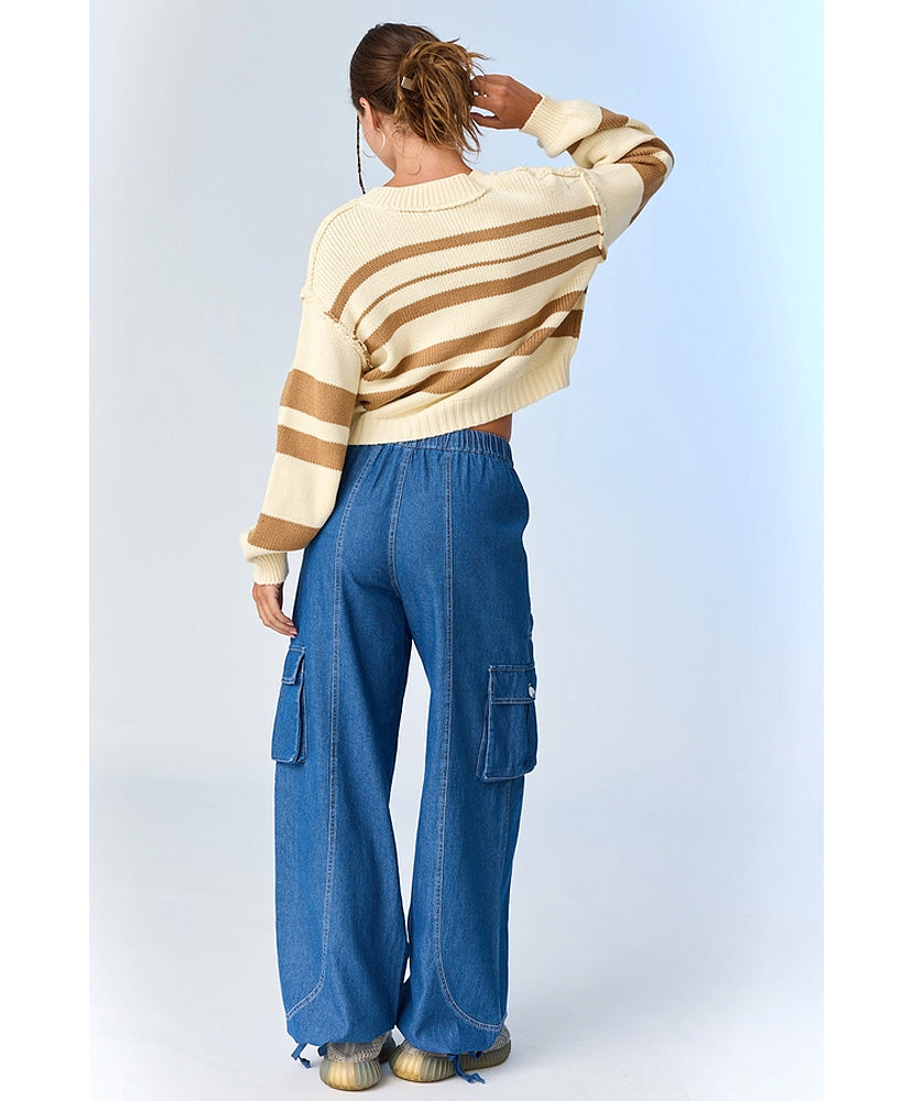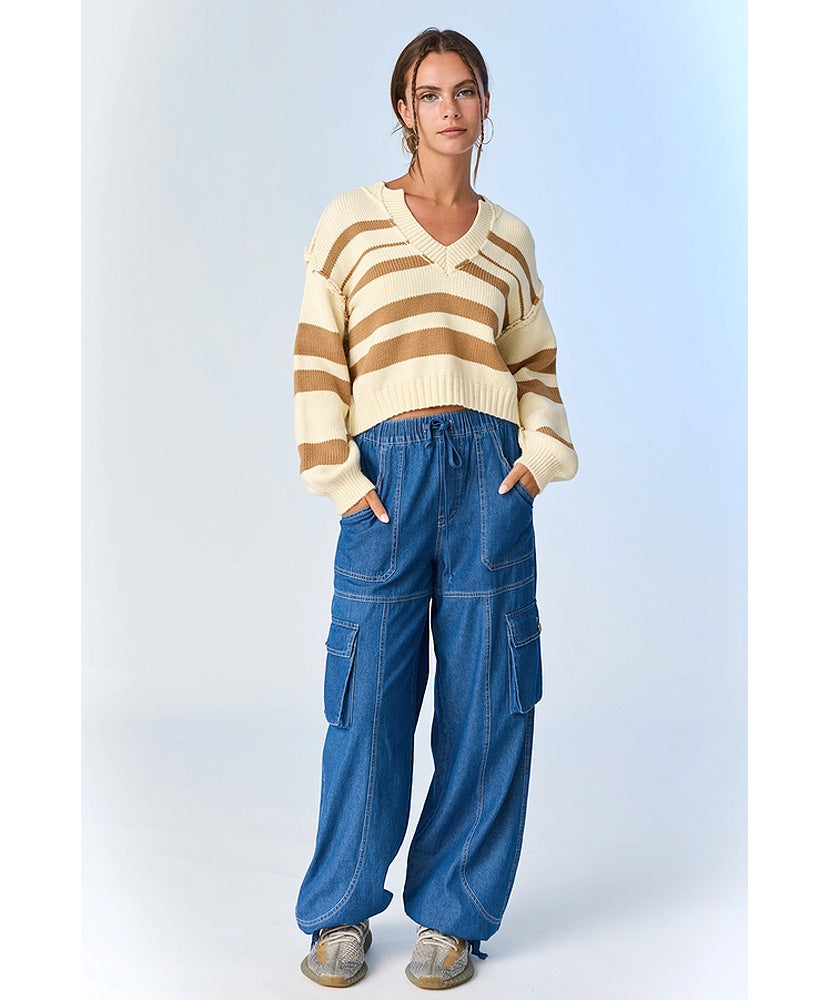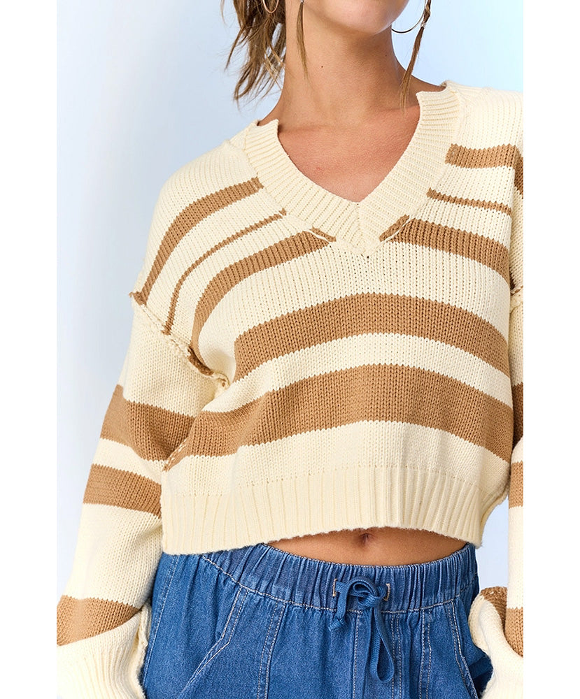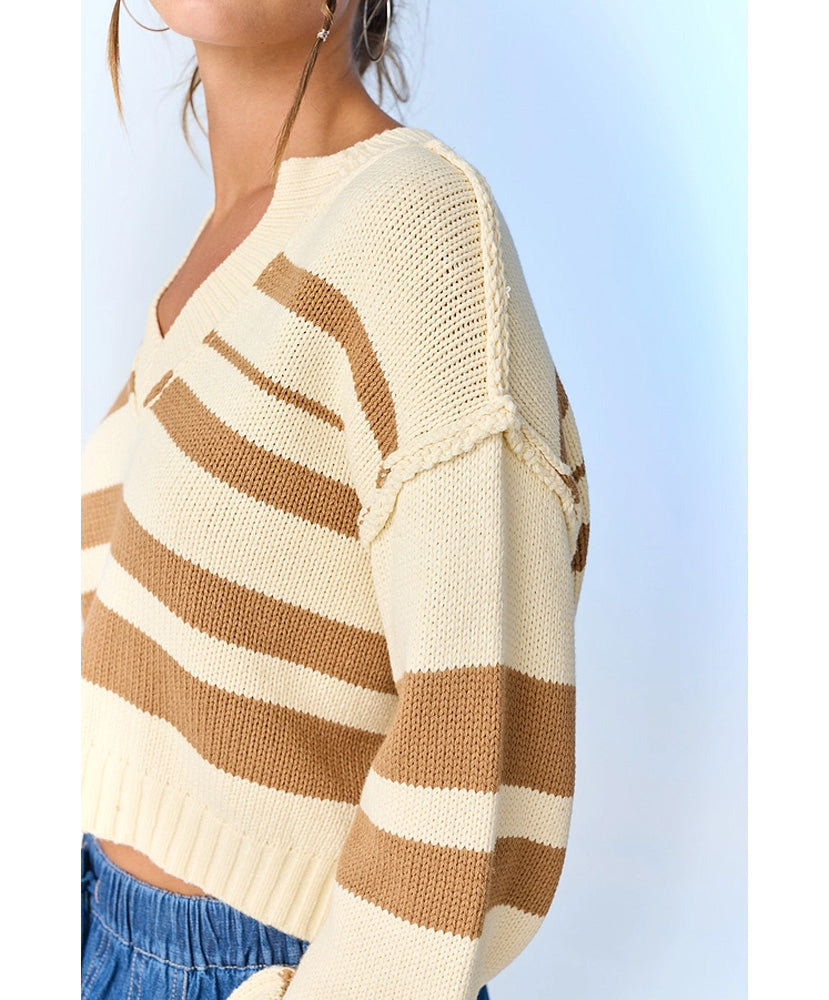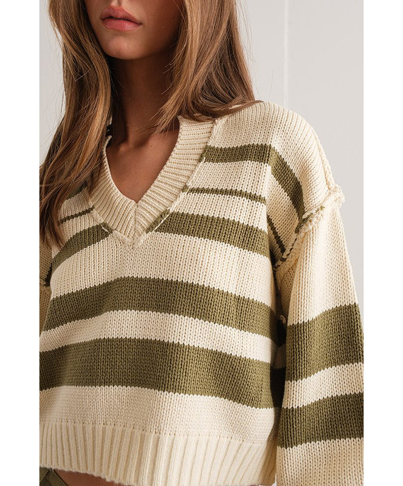 Nancy V-Neck Stripe Sweater Top