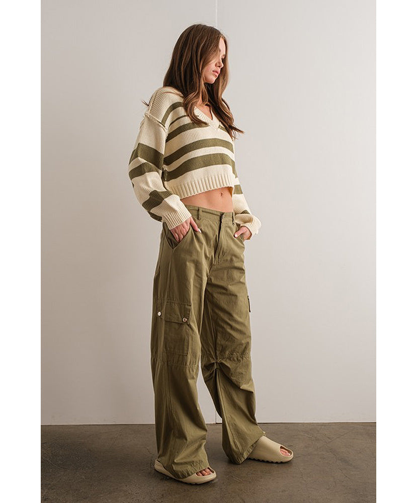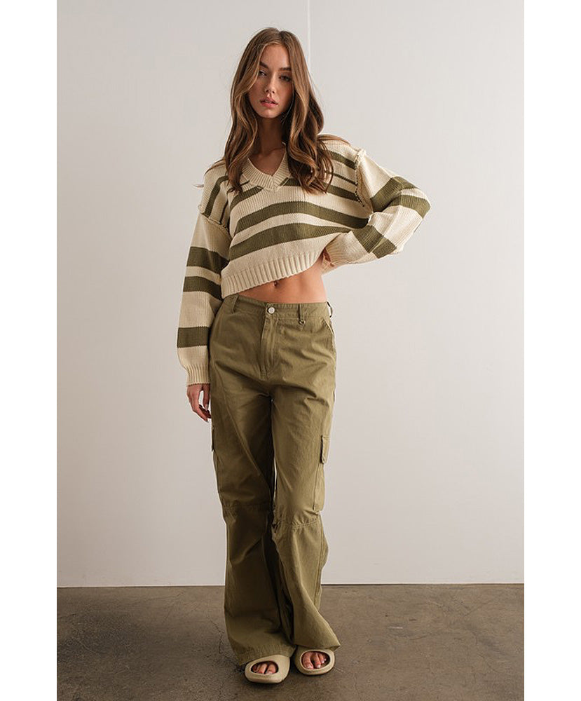 - V Neck Stripe Sweater Top