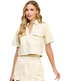 Bring the bold. The Allie Cropped Top is crafted from luxe faux leather with a sharp collared V-neckline and statement front patch pockets. Its cropped silhouette adds a modern edge that’s equal parts chic and daring. Pair it with the matching Allie Asymmetrical Skort for a look that turns heads, day or night.