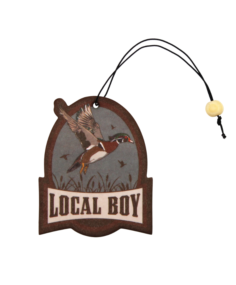 Bring a little backwoods breeze to your backseat. The Swamp Duck Air Freshener keeps your ride smelling fresher than a cold front on opening day. Featuring a flying mallard and the Local Boy stamp of approval, it's the only duck that belongs on your rearview—no calls required.