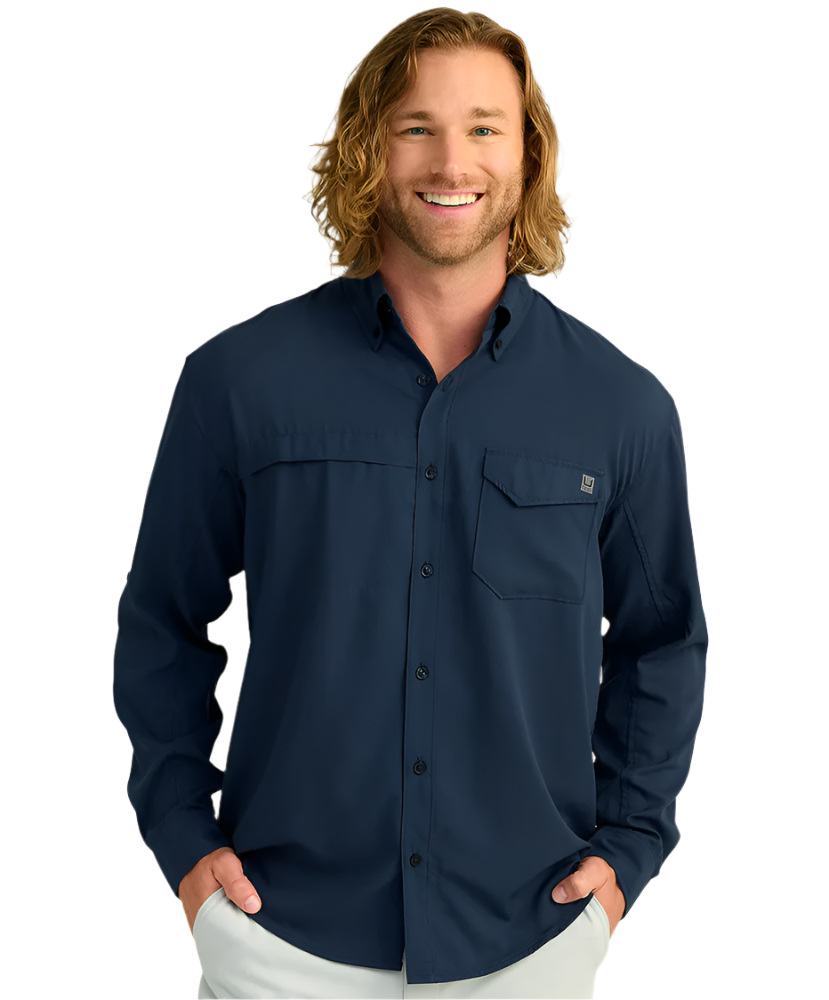 The Huk Tide Point Long Sleeve provides superior performance, designed for comfort and durability both on and off the water. This product offers 30+ UPF protection, mechanical stretch and a quick-drying fabric with moisture transport capability. It also features a mesh-backed chest pocket, perforated back, interior eyewear wipe and button roll up sleeves. Get everything you need in one garment.