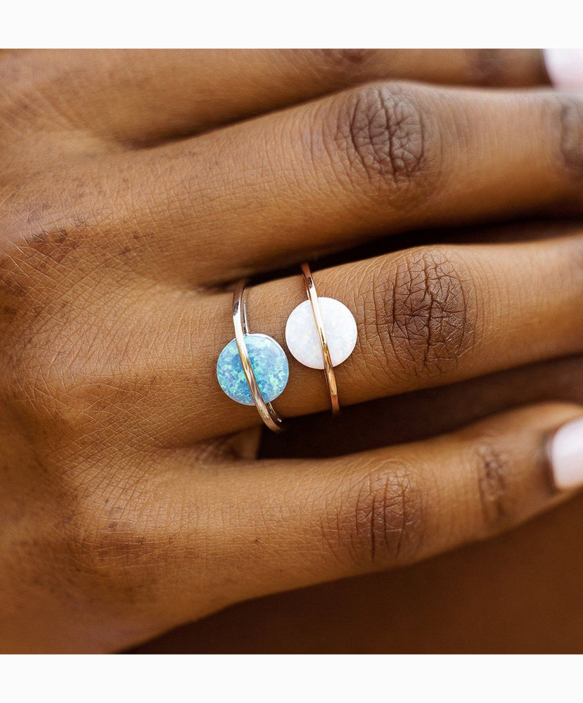 - Rose Gold: Brass Base w/ Rose Gold Plating & White Synthetic Opal