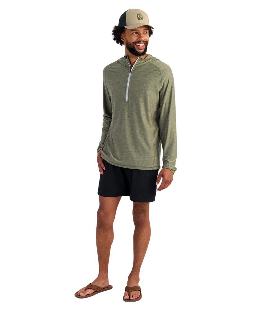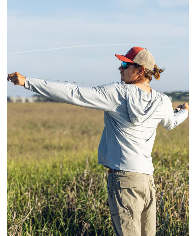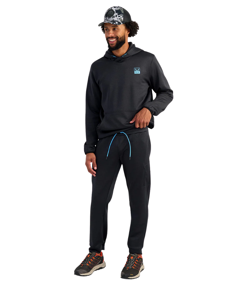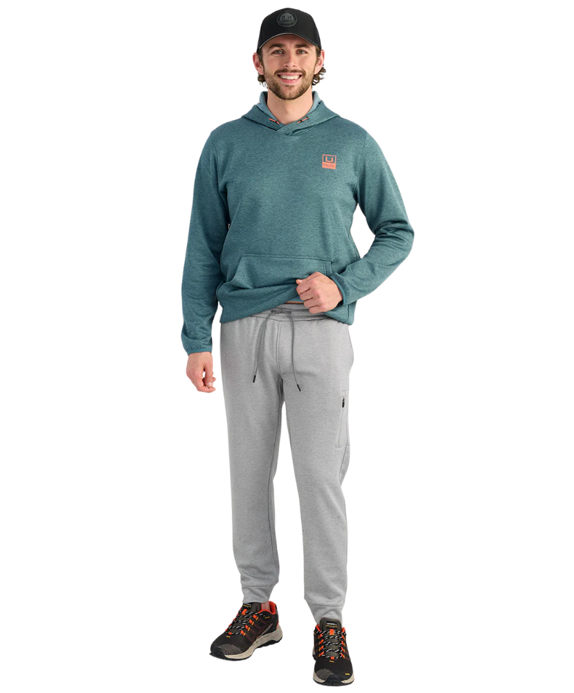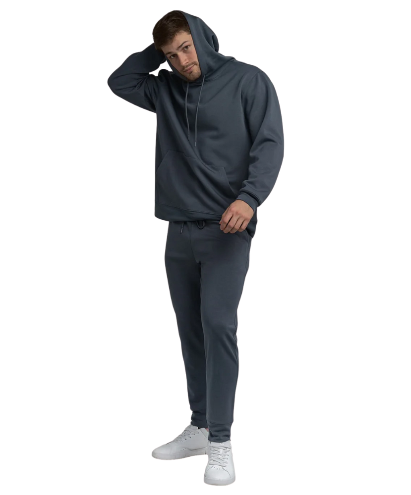 Person wearing a RETRO DUCK camouflage hoodie on a white background