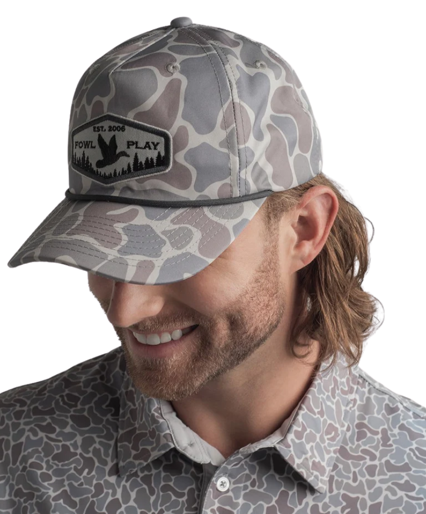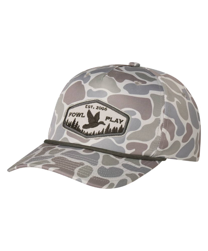 Camo, but make it stylish. The Fowl Play Snapback is an easy-wearing 5-panel hat with a relaxed fit and all-over Ridgeline camo print that sets it apart from the rest. The embroidered patch front keeps it clean and classic, while the single-color rope detail across the brim adds a subtle retro vibe.