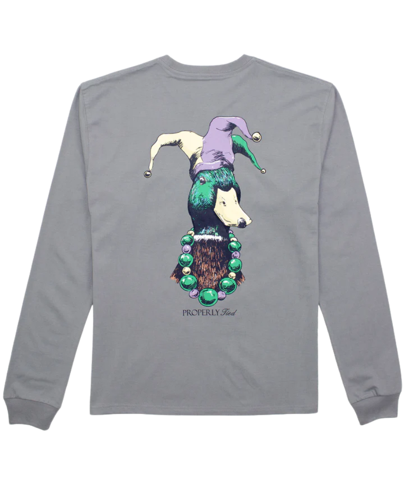 Bring the party to the bayou with the Mardi Gras Mallard Long Sleeve Tee. Crafted from 100% premium Pima cotton, this tee delivers unmatched softness and durability for all-day comfort. The hand-drawn mallard graphic celebrates Mardi Gras season with a playful mix of southern charm and festive flair. Pre-shrunk and made to last, it’s a staple you’ll reach for long after the parades are over.
