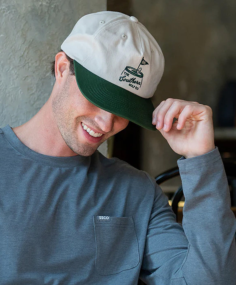 Hole in 1! SSCO's new two tone 5 panel rope snapback features quality embroidery and a flattering fit. All your friends are going to try to steal it.