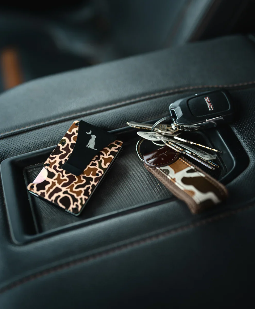 Crafted with dependable materials and wrapped in a clean, camo-inspired design, it features the iconic Dog & Moon logo right on the money clip, giving it that signature Local Boy stamp of approval.