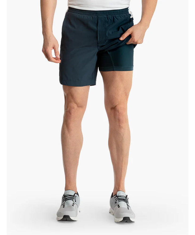 Step up your workout routine with the men's 7" Gym Shorts from Birddogs. Engineered to endure till the last set, these men's activewear shorts are made from a soft blend of durable polyester and spandex with 4-way stretch. The built-in liner is made from spandex and provides extra coverage and support so you can focus on your goals in stylish comfort. The elastic waistband offers a stay-put fit, and the secure zip-close pockets are perfect for stashing your daily necessities.